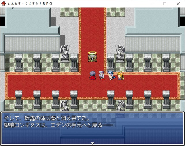 사신에게 가보면최종병기를 보여줍니다요성병기 데미우르고스입니다육조들이 힘을 합쳐서 만들었다고 합니다실제로보면 그로테스크할거 같네요히루코의 육체 그 자체로 만들었다고 합니다그리고 대량의 식물이 에너지를 생산해 동력원으로 삼습니다그 생명을 이루는건 카나데의 물의 힘인가 보네요이걸로 적 거점으로 침공해 절대의 화력으로 압도한다고 합니다문제는 시공간전이 기술이 없습니다제어실까지 이동하는데컴퓨터와 루카를 접촉시키면 시공간 이동을 할 수 있다는데 다들 그걸 봐서 뇌를 꺼내냐고 묻습니다코어에 손만 대라고 합니다 뇌를 꺼낸다니 육조도 절래절래할 생각입니다이제 막 만든거라 바로 천계에 가긴 그렇고 시험운전을 하려는데마침 적당한게 특이점세계의 마왕성 탈환입니다전송장치도 부숴져 기동력도 저하되어있으니 천계의 세력을 몰아낼 절호의 기회입니다바로 갑시다성의 탈환이지 소멸이 아니기 때문에 결국은 성내의 정리는 루카가 해야합니다육조중 4인이나 지원한다고 합니다타마모에게도 말을 걸어보니 뭔가 필요하다고 하는데천계의 땅의 정령을 데리고 와 달라고 합니다이미 동료화 하고 있으니 바로 보여주면 야마타이에 전해지는 전직아이템을 줍니다육조가 하나 더 와있네요인사도 해둡시다정비를 마쳤다면 출발해봅시다마왕성 위에 요성이 떠올랐습니다위력이 세긴 세군요미나기도 체술이 뛰어난걸 볼 수 있는데 원래 음마는 체술쪽이 좋긴 했나봅니다히쿠로의 분신까지 마왕성에 흩뿌려지고우리도 마왕성으로 뛰어들어갑시다 마왕성이 왜이래지하쪽에 사천왕들이 붙잡혀 있을지도 모릅니다눈치껏 회복시켜줍니다분신인데도 엄청난 전력입니다이 와중에 휴식은 하시는 천사들든든하다!미나기에게 한대 처맞은 시온이 루카를 막으러 옵니다약하니 성 밖으로 던져버립시다배신의 정석지하로 가서 사천왕들을 구출하도록 하죠흡혈귀의 봉인옥도 챙기고강력한 무구도 챙겨갑시다드디어 타마모를 만났습니다다만 에르베티에는 방금전 천계로 전이되어버렸다고 하네요혹시나 우리가 이리아스 편이면 어쩔뻔 했냐고 합시다역시나 강력기계라서 생각보다 멀쩡하게 다시 오는데형태가 변하면서 다시 싸웁니다이긴 뒤 이번엔 앨리스가 불에 태웁니다에덴도 길을 막는데에덴이 총지휘관인줄 알았는데 여기까지 나와있습니다바로 롱기누스를 던지는데 히루코가 막아섭니다바로 소멸되는 히루코짜피 분신입니다막을 수단이 많은 육조의 앞에선 생각보다 무력한 무기네요이쪽의 에덴도 뭔가 허접합니다여기도 그노시스랑 싸우는데천사 맞아?무려 아포토시스를 개조한 천사였습니다 대체 천계란 뭘까요스큐라의 봉인옥도 챙기고천사의 봉인동도 가져갑시다이게 안죽네더 나오면 뇌절이야히루코가 시온의 잔해를 먹고그걸 불태우기까지 하면서 확인사살까지 합니다누가 여기를 지휘하니 했더니 이리아스였군요너가 상대가 되겠니저 둘도 하급요마치곤 세긴셉니다그래도 우리의 상대가 될 정도는 아닙니다남은 힘으로 둘을 피난시키고 히루코에게 잡히려는 찰나에덴이 나타나 이리아스를 살립니다대신 에덴이 잡아먹히게 되고이리아스가 도망치는건 봐줍니다이렇게 마왕성은 정리가 됩니다갑자기 하늘에서 뭔가가 떨어지는데 그노시스의 잔해였습니다전쟁이란 허무하군앨리스는 계속 고민을 하지만 왕이라면 그런걸 등에 지고 나아가는 자라고 평가합니다그림자명주는 뭔가 수작을 부리는 듯 하네요이쪽도 생각보다 잘 싸웁니다명경지수가 그렇게 사기적인 스킬이였나다만 피해도 여파로인해 조금씩 상처는 쌓입니다모두를 지키기 위해 싸우는 그란베리아상대의 방어력이 매우 강하기 때문에 결국은 그때의 차원을 가르는 기술이 필요합니다상대의 기술을 역으로 이용해서 발사된 성에너지를 검으로 받아 들인뒤그 힘과 자신의 어둠의 에너지를 융합시켜 마침내 차원을 가릅니다하지만 그런 기술을 쓴 그란베리아도 죽고 맙니다