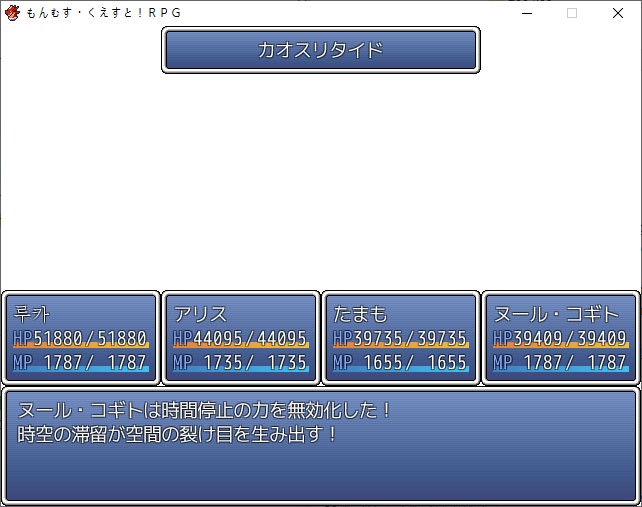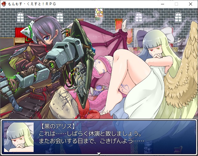 장비를 벗으라는데 느낌이 안좋네요설마 헤일로 없어져?하인리히를 깨우려고 하면 누군가가 막는데더 세보이는 앨리스입니다와씨 너무 많은데이때 제천대성이 도우러 옵니다 은근 호감캐인앨리스 혼자 덤벼서 의외로 약합니다빠르게 하인리히를 깨워봅시다하지만 실패라고 하는 하인리히이런하지만 이쪽의 앨리스가 하인리히를 설득해줍니다후배에게 멋진 모습을 보여줘야겠군요오오 엄청 든든합니다어기서든 마왕은 용사에게 지게 되어있습니다와씨 엄청 멋집니다상황은 정리가 되는데내 엔젤해일로가!!!!쓰레기로 변합니다왠지 센거 주더라장난은 이제 끝흑의 앨리스로서 도와줍니다이제 앨리스의 본거리를 치려는데 어디있는지 모릅니다루카라면 혼돈의 문을 열 수 있는데?해서 앨리스의 기척을 느껴서 시공의 문을 여는데혼돈이 이쪽을 쳐다봅니다아빠라고 부르는데 대체?소니아도 아포토시스로서 물어봅니다눈을 보지 말라고 합니다문제는 앨리스를 이길 수 있냐인데지키려고 해도 앨리스의 군대를 못막습니다공격말곤 없습니다여기는 알아서 잘 막네요전원 신전으로 모이라고 합니다생각보다 넓네요하인리히도 있습니다어 좀 징글징글하네요세지 않을까 싶긴한데혼을 빼서 조종하고 있는거라 생각보다 약합니다일단 왔다갔다는 거릴 수 있네요그란골드는 당장 구경이 가능합니다당장은 크게 없긴하더군요전에 못먹었던 상자를 열어봅시다고스트와좀비의 봉인옥을 얻을 수 있습니다얜 그대로 있네요동료화 하지 못한 앨리스들은 여기서 잡으면 되는데 종류가 너무 많긴합니다지하부터 가보니뭔 나비가 있네요저기에 상자가 있는데 갈 수가 없고이곳저곳 뭐 많습니다뭔가 일기장 같은게 있는데이거대로 해보자고 합니다2층의 서쪽 침대가 있는 방을 찾아봅시다저긴가보네요동쪽에도 여러 방이 있는데 여기서 요마의 봉인옥을 얻을 수 있습니다그 다음 식당에서 밥을 먹어줍시다기도도하고 곰이랑 점심도 먹어줍시다 그저 밥먹어서 기쁜 앨리스그 다음 춤을 춰주고템도 훔치고촌장이 뭔가 했는데 지하에 나비였습니다그 다음 피아노를 들으면서 저녁식사마지막으로 기도하면뒤의 문이 열립니다여기서 인형의 봉인옥과하인리히의 검을 얻을 수 있습니다회복하고 올라가면마르케르스가 있습니다흑의 앨리스가 없으니 이쪽 앨리스를 잡으려고 합니다마왕이 세계를 혼돈화 하는 조건이라는데흰토끼에 이끌린 결과 혼돈이 되어버린답니다정령을 몸에 두루고 전투를 걸어옵니다이겨주면 루카를 인정해주긴합니다마왕을 잡을때마다 특이점의 수명이 약 1일 늘어난다고 합니다루카가 제 명에 다 살도록 해주고 싶었다고 합니다 역시 아버지정확하게 마왕이 이끌린 결과 흰토끼가 되어버린다고 합니다흰토끼의 정체는 극한까지 혼돈에 가까워진 마왕의 모습이였네요 왜 루카를 도와주나 했습니다마왕에게 나타나 마왕에게 흰토끼의 인자를 발현시킨다고 합니다소니아가 해석도 해주네요앨리스도 흰토끼가 되었어야 했는데 뭔가 변하는게 느립니다누루코가 옆에서 중화시켜줬던거군요얘 없었으면 패러독스는 이미 끝났네요도란도란 이야기 나누는데 흑의 앨리스가 나타납니다바로 죽이려는데 힘의 격차가 큽니다나에게 덤비면 죽을텐데?그러기 전에 힘을 해방하라고 합니다 누루코 본명이 누루 코기토군요뭐야 이거 맘대로 되는거였어?혼돈의 위신이라고 부릅니다이리아스도 따짐 성소와 마소의 정령이라고 합니다여기서 누가 혼돈에 가까운지 겨뤄보자고 합니다센건 흑의 앨리스인가 보네요또 뭔가 스텟이 이상한 캐릭이 있는데마키나는 뭔데 좋아하는지 모르곘습니다ZZZ기를 써주면 바로 끝납니다흑의 앨리스가 시마법을 쓰는데 무려 시마법을 카운터 칩니다와씨 성능뭔데문제는 경험이 딸린다고 합니다 내구성도 부족하다네요서로서로 많은 데미지를 입었습니다이 틈에 마르케르스가 뛰어들고혼돈공간을 이동하는 힘이라면 자신이 위라고 합니다이렇게 혼돈 깊숙한 곳에 앨리스와 같이 갑니다루카에게 세계를 지켜달라고 합니다아무리 앨리스라도 빠르게 탈출은 못하나봅니다그렇게 마르케르스는 사라지고 두 정령은 루카에게 맡기고 갑니다루카를 주인으로 인정합니다모리건도 재미있네요이때는 사고도 행동도 단순해진다고 합니다자꾸 끼어드는 사람이 많은데아닛 내 누루코가이리아스가 나타납니다누루코를 납치해버립니다아니 애정캐라고 키워놨더만 자꾸 뺏어갑니다천계가 혼돈의 힘을 얻는다면 시공전이장치도 다시 만들 수 있다고 합니다그란골드 이야기는 이제서야 해줍니다드디어 결전의 시간이 다가오고 있습니다 사신성으로 와달라고 하네요