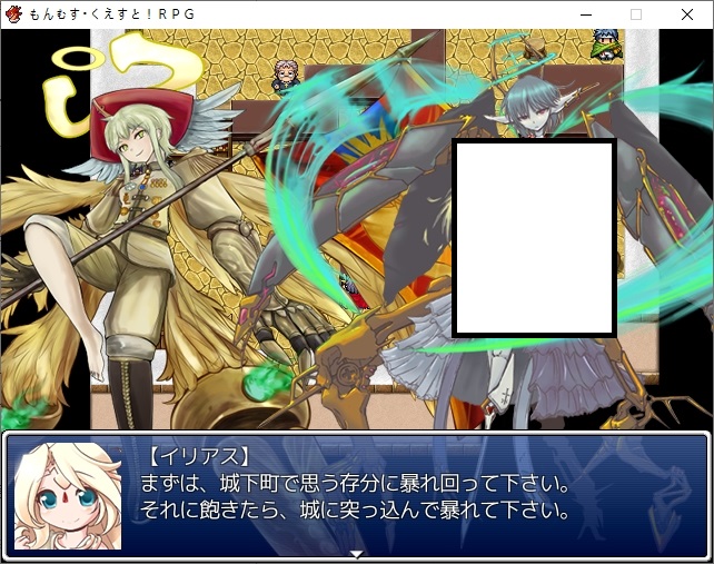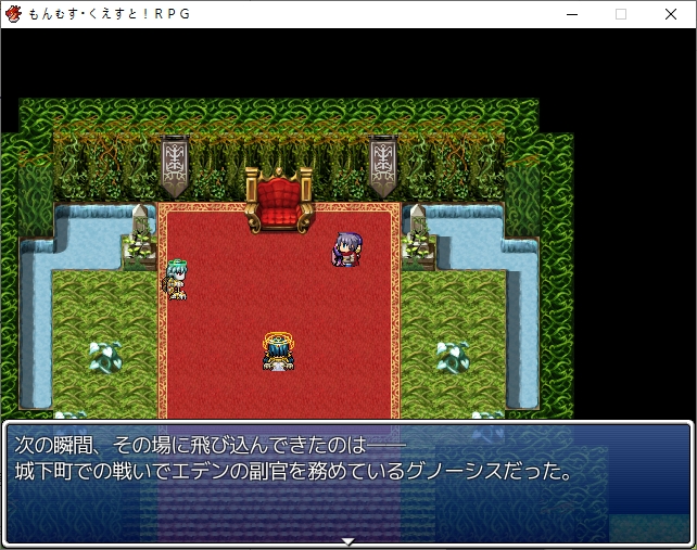화산으로 인해 지형이 험난합니다붉은게 뭔가 했더니 용암이였군요 어떻게 보면 대륙 반을 덮고있네요요하네는 먼저 도착해 있습니다역시 이쪽의 반란군도 라자로가 이끌고 있군요동일하게 공작원을 보냈지만 모두 연락이 끊기고 맙니다여기선 스이키가 죽었나보네요드디어 마계에서 첫 대도시 탐험입니다대신 동생이 있네요천사들을 이쪽으로 옮깁니다 드디어 제대로된 거점입니다여기도 동일하게 정령이 있나본데 기대가 되는 부분입니다저게 뭔가 했더니 바다가 썩어서 저런 색이였군요역시 사신이 지배해서 환경이 이렇게 된건가는 이리아스가 세계를 길동무 삼겠다고 꼬장부려서 랍니다역시 이리아스;;정령은 지금 없다네요할거도 없으니 바로 그란골드로 와보면 생각보다 평범합니다육조끼리 사이는 안좋은지 카나데와 전쟁을 꽤 했다고 하네요스이키란 사람을 찾아봅시다당연하지만 잠입이니 이름도 가명이고 한번도 본 적도 없으니 누군지 모릅니다임무시작은 3개월 전이고 어쨌든 여기서 살았을테니 그 기록이 남아있을거라고 합니다정보실부터 찾도록 하죠식당에 있다고 합니다파괴자편을 해서 이게 요성을 말하는거란걸 알고 있죠식당에 귀여운 아이가 있다고 합니다또한 아마타이에서 점술가가 한명 왔다고 하네요요마들도 거르는 사바사요정은 이쪽에서도 귀엽다고 잘 살고 있네요나도카라는 점술가가 있는데뭐 딱히 도움은 안됩니다식당에 가보면아미라가 있습니다 돈을 주면 도구실로 가보라는 정보를 얻습니다아까 들은 미인 나중에 배틀을 할 수 있습니다도구점으로 가보면돈을 주고 정보를 얻을 수 있습니다라자로가 그 정보를 해석해서격투가 미코토 이 사람이란걸 알 수 있습니다남동쪽 집에 살고 있습니다 나머지 2인은 이미 소재를 알고 있습니다그 집으로 가보면 아무도 없고여기를 조사하면 실종자리스트를 찾을 수 있습니다모두 식물원으로 갔다는 정보도 얻습니다즉 자기가 무슨 일이 있을 때를 대비해 남겨둔 메세지입니다그냥 정면으로 식물원으로 들어가려고 하는데 여긴 고위요마도 있습니다에바의 짐에서 식물원 입장 티켓도 찾았습니다이렇게 그냥 당당하게 들어갑니다잠입이 간단하네요나머지 둘은 이 시점에서 배틀이 가능하니 한판 하고 갑시다메피스토는 여기서도 꽤 높은 지위인거 같네요안내는 거절하고 알아서 구경해봅시다카논을 이미 알고 있는 이리아스가 마음의 준비를 하라고 합니다왼쪽부터 보라고 합니다특이하게 그로 주의가 뜨는데 실제로 잔인하긴 합니다전 상관없어서 다 보긴 했습니다초반은 구경을 못하고여기도 아직 크게 없는데이쪽부터가 진짜입니다죽 보다보면 결국 소니아가 폭발하고이쪽도 가짜라는걸 들킵니다그렇게 쫓기게 되고지하수로로 도망칩시다시체들이 즐비하군요마력을 찾아보면 하나가 빛이 나는데이미 소화액에 당한거 같네요누군가 말을 거는데카렌이 벌써부터 탐지하고 분신으로 상대합니다전시되기 싫으니 튀어줍시다센건아니라 간단히 탈출하면지상에도 분신이 나타납니다물량이 너무 많습니다자기 시민까지 잡아먹네요가축취급입니다이곳저곳 막혀있는데여긴 못막았나보네요본인이 직접움직이진 않는데 아마 7천사를 감시하고 있어서 같네요일단 골드포트로 돌아오면 천사들이 있습니다바로 카렌을 치도록 합시다남은 천사군 자체는 많기 때문에 전력자첸 압도적입니다천사군이 정면을 치는 사이 수로를 이용해 성으로 바로 가려고 합니다7대천사도 해방해서 전력으로 써줍시다카렌은 머리가 좋지 않으니 제대로 대처하지 못할거라 합니다그노시스를 부관으로 임명하는데 이쪽 파티 전력을 빼가네요시온은 대충 알아서 하렴전력이 자꾸 빠지는게 힘드네요바로 갑시다첫 결전이니 일리아스님의 훈사가 있겠습니다확실히 군대라서 전략적으로 공격해갑니다카렌이 등장하지 않는 이상 우리쪽의 우세는 확실합니다여기도 잠입은 성공합니다최악은 잠입쪽부터 처리하고 성밖을 정리하는건데 카렌이 나오지 않고 있긴 합니다수로에서 나올거란걸 생각하지 못했나봅니다카렌이 그수준이라 부하고 그수준인가 보네요초대객들은 다 피난갔습니다위로 가기전에전시물이 뭔가 했더니 봉인옥이였네요딴건 별거 없습니다위로 가보면 누군가 말을 거는데라파엘라였군요결계를 뚫고 말을 할 수 있을 정도의 실력자같습니다저기 있네요봉인인데 뚫을 수 있겠나 싶긴한데 외부의 충격에는 그렇게 강한거 같진 않네요하지만 그걸 놔둘 카렌이 아닙니다분신자첸 약하지만문젠 엄청나게 양이 많다는 것다시 도망을 칩니다뭔가 어디로 유인을 하는거 같은데안쪽으로 유인당합니다올라가면 간부가 기다리고 있고어짜피 이쪽은 한쪽을 다 밀고 온 루카가 어렵진않습니다마을이 난리인걸 하나도 신경을 안쓰는군요일리아스가 그런 캐릭터 아니였냐고 합니다 그건 그렇죠이기면 슬슬 본격적으로 한다고 하는데성안을 휘젓고 다니던 시온이 마침 결계를 부숩니다잡아먹히기 직전라파엘라가 옵니다근접전으로 공격해오지만 라파엘라도 꽤 셉니다파괴자편에서 라파엘라가 사실 음마의 피도 진하단걸 들었죠의외의 실