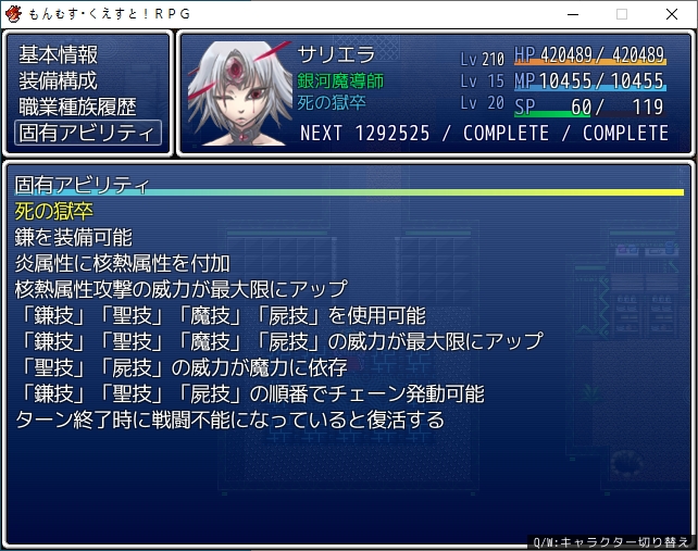 볼거 다 봤으니 야마타이로 가봅시다위쪽의 봉래산으로 가보면천사병이 있습니다에덴말고 다 죽었군요 미카엘라와 루시피나를 어캐이긴건지 모르겠습니다뭔가 예언을 남겼는데 타천사의 구세주가 구원을 내린다 라네요판도라의 함정은 여전합니다여기서는 타마모가 비인도적인 실험을 저지르고 있네요아인의 봉인옥도 챙겨주고끝에는 에덴이 있습니다 생각해보면 3명이 다 살아있는건 흔치 않네요누군가 오는데앨리스팀입니다이쪽을 저지하려고 하지만이쪽도 마찬가지로 강합니다에르베티에도 아직 힘이 익숙치않나보네요일단은 도망칩니다이리아스에게 꽤 실망했던 에덴자신이 전지전능하지 않다고 인정한 이리아스입니다야마타이 제압전은 일단 협력하기로 합니다천사들을 잠입시켜 소란을 피울 생각입니다또한 자매천사들이 상공에서 엄청난 공격을 퍼부어서 타마모를 끌여들일겁니다안오면 야마타이를 부숴버릴겁니다그랜드노아는 어쩌나싶은데에덴이 지키고 있을거라고 합니다준비가 다 되었다면 작전을 시작하도록 합시다아군이니 든든하다상공에서 포격이 날라오고어쩔 수 없이 타마모가 출격합니다엄청난 사이버도시네요지하로 가는 엘레베이터가 있습니다긴급사태라 멈췄습니다이런어딘가에 제어컴퓨터가 있을거니 찾아보도록 합시다패잔병들이 여기 있었군요상점들이 있는데생각보다 그냥 팔아줍니다아래로 가는 계단은 존재하지 않아서 엘레베이터를 타야합니다쿠노이치인데 입이 가볍네요 4층까지 가면 된다고 합니다적인데도 쿨하게 대장간일을 해줍니다도 무기들은 만들어줍시다오히려 여기만 적으로 인식하니 당황스럽네요3층으로의 계단도 잠겨있는데그저 밥이 좋으신이쪽으로 가면 되네요드디어 4층으로 왔습니다저기도 또 잠겨있네요카드키는 타마모가 가지고 있을거라는데분명 예비가 있을거라고 합니다척봐도 저기 숨겼을듯 하네요이야기를 들어보니 세전함이 맞나보네요카드키를 훔칠 수 있습니다개떡같이 만들어서 화나신 이리아스 건설법에 소방법 위반이라고 합니다레미나 연구소도 비슷하게 사고나면 다 묻히지 않냐니뭔가 있다면 그렇게 처리할 생각으로 만든거라네요...드디어 지하로 갈 수 있습니다아래로 더 내려갈 수 있고저긴 못가네요실라칸스라는 고대어류도 구경할 수 있습니다별거 없으니 더 지하로 가면 이미 에덴이 대부분 구출했네요웜서머너의 봉인옥도 챙겨주고사리엘라도 만날 수 있습니다여기도 잠겨 있어서위로가서 해제하고 갑시다탑도 부숴주면이미 제 3의 눈으로 전황을 다 살피고 있고 4층으로 가서 자매들을 지원하도록 합시다드디어 처음으로 7천사의 스펙을 구경할 수 있습니다시점이 바뀌고 대치중인 상황에서빠르게 미나기가 지원으로 오고7천사까지도 매료시킬 정도의 대음마긴 하네요뭔가 모르는 종족도 가지고 있습니다1체인을 넘은 2체인을 볼 수 있고 턴종시 죽어있으면 부활이라는 사기스킬도 달고 있습니다스텟증가도 50퍼가 끝이 아닌가보네요사리엘라에게 쩔을 받을 수 있습니다4층에 이상발생으로 또 타지지 않습니다안타지는 이유를 알법도 하네요각 성에도 육조들의 공격이 시작되었습니다의도를 너무 읽히고 있습니다아군에 스파이가 있을거라고 생각하는 이리아스이때 사리엘라가 공격을 받는데이전엔 부활이 빠르더만 지금은 좀 느리네요 시간을 벌어달라고 합니다일단 발을 좀 묶어주면확실히 이쪽도 세지긴했습니다봉인을 오래당해서 재생에 시간이 좀 걸리는 거였군요사리엘라에 맞춰 에덴이 공격하고롱기누스 맞아주는 육조가 없네요다들 그걸 누가맞냐고 하네요하지만 에덴이 공격한다면 어떨까하지만 에덴이 공격한다면 어떨까다시금 사리엘라의 공격으로 이쪽이 약간 우위입니다문제는 미나기음마의 시조답게 강력한 매료술과 접근을 하면 격투술로 모두를 상대하고 있습니다가불기 수준의 강함에아르마가 끼어듭니다아르마도 음마라면 체술이 약할거라고 생각해서 덤빈건데어릴적 아르마가 열심히 읽었던 책그 책의 저자가 미나기였습니다일단은 이쪽도 에덴들이 시간을 버는 사이 도망을 치긴 했는데성들을 지키려고 하지만오히려 공격을 하려고 하는 이리아스미나기가 여기에 있으니 산이리아로 가려고 합니다이미 우리의 행동을 알고 있다면 허를 찌르는게 맞다고 생각합니다시간을 끌고 있으니 빠르게 공격을 더 하는게 맞다고 생각합니다이미 성마대전에 싸워봐서 본격적으로 싸우면 이런 수준이 아니라고 합니다애초에 히루코와 사쟈는 대체 뭘하는지 모릅니다이런 방식은 성마대전때 천계측이 썻던 전략이라고 합니다적은 전력을 온존하고 있으니 뭔가 큰 작전이나 비밀병기를 준비하고 있을지 모른다고 합니다어쨌든 7대천사를 구출할 수 있으니 나쁜 작전은 아니라고 합니다이미 봉쇄되어있네요내 아르마....뚫고 갑시다다시 시점이 돌아가고왜 음마의 몸으로 무도를 익혔냐고 하는데그런 생각을 부숴버리고 싶었다고 합니다아르마가 마음에든 미나기는 기술을 전수해준다고 하는데척봐도 엄청 세 보이는 기술이네요코앞에서 멈춰줍니다이건 결투가 아닌 대련이였다면서 당
