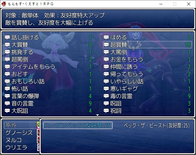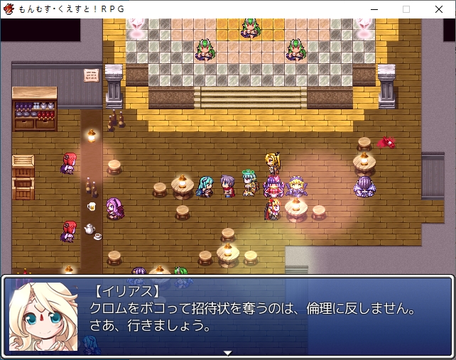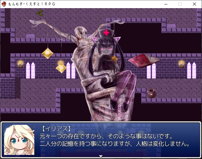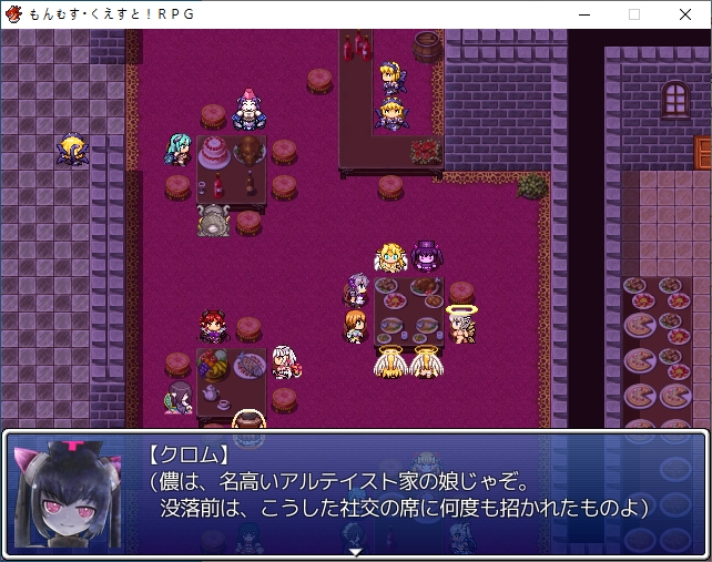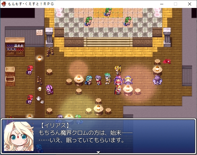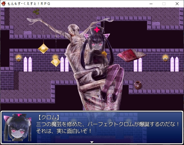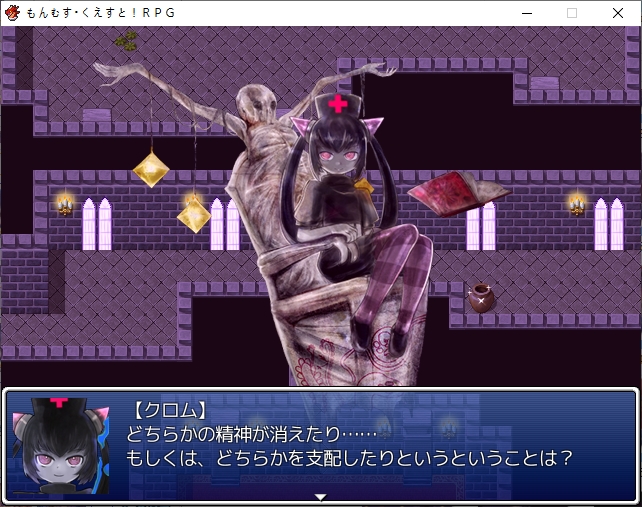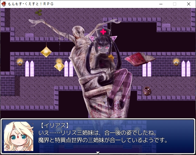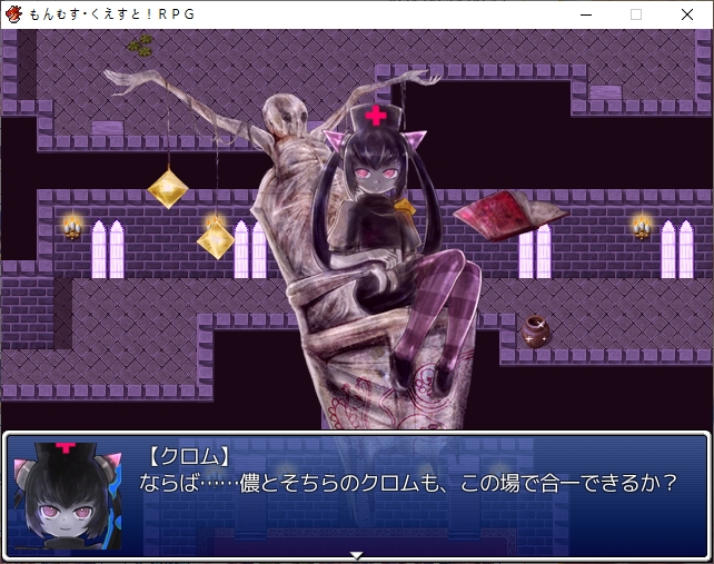 홍등가처럼 되어있네요서큐버스의 마을인데 인간이 배틀1위랍니다디자이너 로사라는 이름이 나오던데 생긴건 그냥 서큐1이더군요허룡린석이라는 광물이 있나보네요해적단이 훔쳐서 숨겨놨다고 합니다남쪽 대륙에 엔리카도 의외로 살아있나보네요점술집은 쉬고 있습니다일단 주점으로 가보면성으로 초대받은 사람중에 크롬이 있다는 이야기를 들을 수 있습니다마계의 크롬을 어떻게 하고 이쪽의 크롬을 대신 보내보도록하죠아까 못들어간 점술집인데 여기 크롬은 강령술을 쓰네요크롬을 때려눕히고 초대장을 빼앗을 계획을 세웁니다크롬은 대체 무슨 죄지겉은 멀쩡해보이지만 방은 난장판입니다여기서 고스트의 봉인석을 훔치고기상자고 있던걸 깨워서 혼란스러운 틈을 타서 묶어버리고장농에 처박아버립시다 진짜 도둑이네서류안에서 초대장을 찾고파티에 맞는 옷도 구해야합니다돈을 훔쳐서 도구점으로 가봅시다옷을 구한뒤 바로 갈거라고 합니다이번에는 모험가 스타일이 유행중이라 그냥 그대로 가는게 좋다고 합니다루카만 여장하고 갑니다맛있는 음식 먹을 생각에 싱글벙글크롬이 크롬인척 하고 들어갑니다미나기가 사신에게서 받은 보옥이라는데 오늘은 상자안에 넣어놨다고 합니다로사의 패션체크 대충 입는 놈들을 돌려보내고 있다고 합니다이쪽의 패션센스를 극찬합니다신간인데 음란한 모양이라니 미스매치인가아니 이건 타락한 신관인가!또한 에덴을 보고도 놀라는데오히려 옷을 입은게 잘못된 듯한 자신감을 보고 놀랍니다어쨌든 통과크롬은 행실이 그렇지 제대로 예절 교육을 받은 귀족집안입니다이리아스가 심부름을 시키는데이렇게 입어서 그런지 추최측의 메이드로 오해받습니다뭔가 일이 점점 늘어나는데스탭룸에 들어갈 찬스이기도 합니다가보면 의자 가져다달라고 하는데 왜 점점 일이 달라지지내려가면 vip접대를 하라고 합니다 무엇성벽이 이상해서 보이쉬한 메이드를 원하는데코앞에 있습니다남쪽의 3방은 vip룸이라고 하네요카지노도 있고특별상품도 있습니다좀 둘러보려니 렉이 심하네요 바로 갑시다뭔 말을 해도 다 좋아합니다천사까지 오는 엄청난 서비스에 만족하시고 주무십니다지하로 더 내려가려니 정보를 얻자는데메듀사가 강력한 천사가 성내 최하층에 있다는 정보를 알려줍니다그 뒤 내려가면 남창들이 있습니다경비를 때려버리고노예는 아니라는데 일하기 힘들긴 하겠네요용사플레이가 유행이라 찐으로 용사직을 얻은 사람도 많습니다더 안으로 가보면 마계크롬이 있습니다 생각보다 빨리 풀려났네요한대 때려주고 이쪽의 사정을 설명해줍시다설명을 듣고나서 이 자리에서 바로 합일이 가능한가 하는데리리스3자매도 합일후 모습이라고 생각보다 간단히 합일을 할 수 있나보네요합일 후에 어떻게 되는지도 궁금해합니다원래 하나이기 때문에 2인분의 기억을 가지고 있지만 인격은 그대로라고 합니다그럼 여기서 합일을 해보자고 합니다강령술 인형술 사령술을 모두 수련한 퍼펙트 크롬이 될지도 모릅니다생각보다 간단히 되네요이세계크롬의 기능들을 이어받습니다덤으로 크롬이 조종하는 유 레이도 들어옵니다어느정도 키워져 있습니다서큐버스의 봉인옥을 얻어주고더 가면 감옥이 있습니다저기 있네요무투파라 그런지 결계에 갇히니 아무것도 못보나 봅니다모리건이 지키고 있었군요미나기도 돌아옵니다역시 강한 미나기이런 난전속에카게츠무기도 난입합니다마왕인형을 꺼내는데이런저런 기술을 써서 만들었다고 하네요벌레쪽 마물입니다근데 생각보다 많이 약합니다 애초에 코스프레 무리들이 엄청 셌엇던거 같기도 하네요여기도 그냥 간단히 부숩니다여기서 비기를 꺼내는데모리건이 주문을 외우기 전에 바로 공격을 하는데일격에 죽습니다전설로만 내려오던 암흑윤무였네요당연히 노리스크인건 아니고 3시간 뒤에 죽습니다둘이 싸우는 틈에 우리엘라를 구출하고무투파라 좀 댕청합니다파괴자에서도 그렇듯 상대가 안되는 모습문제는 카게츠무기 자체는 인형의 몸이라 예비가 있습니다몸을 부순다면 그만큼 많이 만들어 놓으면 그만인형이 되어버린 인형사라고 깔봅니다무대가 막이 오르고밖에서도 싸우는기척이 느껴집니다우리엘라가 동료가 됩니다파괴자땐 이런거 없었는데이전편에서 들었던 인형의 서커스가 이것이였나 보네요특이하게 둘중 하나만 동료로 만들 수 있는 판정이 뜨는데 한쪽은 인형이라 그렇습니다인형사 쪽을 동료로 만들면 인형은 알아서 따라옵니다이쪽도 많이 죽네요봉인옥도 훔쳐가고아무리 적진이라도 학살을 그냥 두고볼 수 없는 루카가 모두를 지키려고 합니다일단 탈출하려고 하면마계의 각 성에서 인형의 서커스가 벌어지고 있다는 사실을 들을 수 있습니다시온과 그노시스를 뻇어갑니다아니 동료좀 그먄 들고가버스를 태워주면 우리엘라에게도 귀환명령이 떨어집니다마왕인형들도 공격해옵니다다들 특색있네요그래도 코스프레 집단보다 세지는 않습니다빨리 여기서 탈출하도록 하죠
