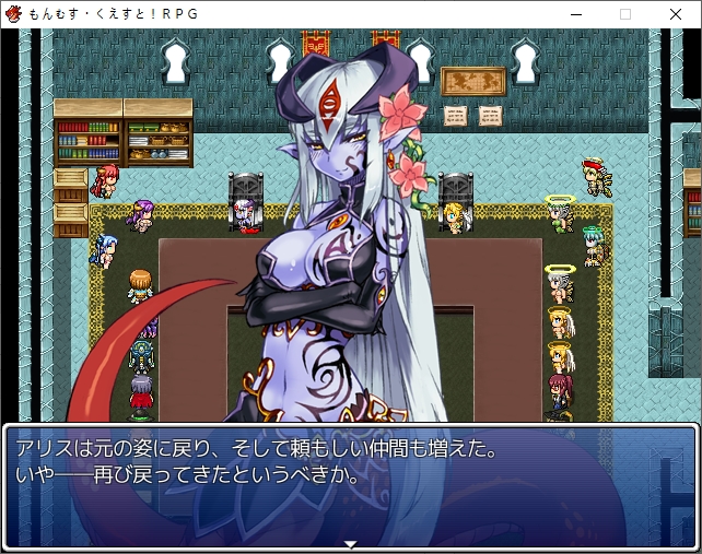 다시 중요한 선택으로 가봅시다나머지 한쪽도 데리고 갑니다돌고 돌아 드디어 제3의 길을 갈 수 있습니다지금이라면두 계획 모두 답이 아니였습니다그떄 일리아스에게 했던 것 처럼 모두에게도 혼돈의 기억을 보여줍니다흰토끼의 힘을 이어받은 지금이라면 가능합니다니들 이렇게 죽어하지만 그렇다고 해도 다른 방도가 없습니다그렇다면 구체적인 해결방안을 제시해 보라고 합니다흑막을 쓰러뜨리겠다고 하고흑막이 없으니 만들면 된다고 하면 됩니다혼돈의 신을 만들어서 쓰러뜨리던가 설득을 하던가 하겠다고 합니다만들 수단은 이미 있습니다바로 힐데입니다또한 신을 만들기 위해선 그만큼의 시간이 필요한데 그걸 해결할 라플라스 프로토콜도 있습니다그러면 헌대에 맞춰서 혼돈의 신이 태어날 것입니다카오스의 존재확률이 고정되어가고 있습니다하지만 너무 불확실 요소가 많다고 반대합니다제어하지 못한다면 쓰러뜨린다는데 그게 가능할까여신과 사신의 힘을 더한거에 10배 그보다 낮을 일은 절대 없을거랍니다그런거 태어나게 할 순 없다고 합니다그러면 어쩔건데?힘으로 막아보려고 하는데마왕성 제압부대가 있는거 알고 있으니 올테면 와봐7대천사든 육조전원이라도 불러봐라 죄다 패줄테니루카의 패기에 눌려 쫍니다 실제로 개처맞아봐서 알고 있습니다그렇게 제3의 길을 찾기 위해 마왕성을 떠납니다그렇게 포켓마왕성에서 회의를 합니다일리아스 파티가 동료로 들어옵니다소니아만 어색하긴 합니다그냥 신을 만들 수는 없으니 상당한 처리가 필요한데지식의 동맹의 협력이 절대적으로 필요합니다아 맞다 카게츠무기어느 세계선이던 동맹과의 접촉을 방해했었습니다이때 천계의 에덴에게서 연락이 오는데라파엘라의 지시로 일리아스를 따르러 옵니다반쯤은 감시임무기도 합니다천계의 치천사들도 동료가 됩니다마계측의 리리스 세자매도 옵니다여기는 알아서 온거네요사신이 뭔갈 주는데원래의 모습으로 돌아옵니다일리아스는 언제?목적지의 좌표는 이미 알고 있습니다제3의 길 시작입니다바로 가기전에까먹고 있던 엘프여왕을 챙겼습니다저 3명을 데리고 와야하는데여기서 얻은 매직포트와 미믹 프리에스테스를 데리고 오면 됩니다이전에 얻은 올잡라운더는 직업경험치 3배를 주기 때문에 필수입니다연구실로 와보면이미 카게츠무기가 와있습니다생각보다 빠르게 와있네요갑자기 잡몹체도 이상해서 어렵습니다저기 있네요분탕충을 또 패러 왔습니다생각보다 행동이 빠르네요저쪽도 혼돈과 밀접하게 연관되어 있어서 그런지 이쪽지 2주차 이상이란걸 알고 있습니다3명의 인형과 함꼐바로 암흑윤무도 추는데 돌진하려는 모리건을 모두가 막아섭니다거기 가면 죽어바로 때려주면 코어가 두개라 아직은 살아 있습니다드디어 인사하는 프로메스틴이쪽의 계획에 대해 설명합니다창조는 가능하다는 프로메스틴분탕충은 설명충 역할을 하게 됩니다얘가 그래도 지식은 많으니 데리고 있습니다적절한 정자를 힐데의 난자에 수정시키면 된다고 합니다루카말곤 없습니다자연수정이 최고야거사를 치루고 무사히 임신했습니다힐데 대신 시그루드리바가 동료가 됩니다전투데이터는 카피해서 옮겼다고 합니다뭐 쓸일은 없을거 같네요알고보니 프로메스틴의 작명센스는 최악이라 원래는 츠요이몬이라고 불릴 뻔 했네요참고로 힐데는 츠요미입니다힐데는 아이를 잘 키울거라고 합니다준비가 다 되었다면 가장 거대한 타르타로스 안으로 힐데를 전송하도록 합시다