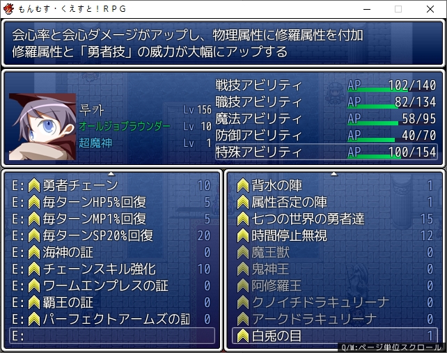 돌입해봅시다다시 설명역을 시작하는 소니아여기에는 최고레벨의 아포토시스가 있을거라고 합니다어디서 많이 본 구조를 지나면뭔가 이상한 곳으로 옵니다템들을 회수하면이런저런곳으로 연결된 곳이네요이런곳에서 야영하는 깡도 대단합니다의외로 모리건이랑 시온이랑 죽이 잘 맞네요여기서도 샘플을 채취하는 프로메스틴합일해도 단순이 능력이 2배가 되는게 아닌건 아쉽네요그렇기 때문에 능력이 비슷하다면 손이 늘어나는게 더 나을 수도 있습니다혼돈의 영향이 루카에 관련된 모든 자에게 영향을 미쳤나봅니다생각해보니 가브리엘라가 있군요마왕성을 멋대로 개장해버려서 싸우기도 합니다소니아도 슬슬 눈치채는 자신의 정체혼돈의 신도 아직까지는 존재하지 않는 확률의 존재입니다소니아도 어렴풋이 존재를 인지하고 있나 봅니다자려고 하면 하인리히가 기술을 알려주는데엘레멘탈 스피카를 배웁니다 참고로 얼마 못씁니다따지면 카게츠무기는 이세계에선 아무짓도 안하긴 했네요꽤나 깊네요죽 내려가면 누군가 있나본데아이들이 있네요이쪽에서도 막아서는데혈통이 개사기인거 치곤 약합니다드립만 치던 기가네도 드랍하네요혼돈의 신이 탄생한다고 해도 그 기원은 세계 전체의 혼돈화라서 위험할 수 있습니다네리스는 아빠 닮아서 떼쓰기를 시작합니다생각보다 피해가 컷는지 여기서 쉰다고 합니다마신의 봉인옥도 얻을 수 있습니다이 앞이 최심부 카오스의 영역입니다지금보니 백토의 힘을 얻어서 어빌이 하나 생겨있었네요 꽤 좋습니다패왕직업에 경험치 3배가 있단걸 이제 알았습니다여튼 안쪽에서힐데를 40억년전으로 전송시키면쨘 하고 현재가 바뀝니다엄청난 힘의 파동이 몰아치고거기다 5명의 거대한 기척도 있습니다5대법칙들이 초월자가 되어서 나타납니다소니아와 루카도 있습니다이들은 혼돈의 신이 아닌 시종들입니다선택을 잘못했다고 말하는 앨리스혼돈의 힘을 얻어서 강력해진 존재들의 자기 소개시간을 가집니다이름도 좀 다르네요뭐 대부분 아는 사람들이라 별건 없습니다이녀석이 최강의 존재입니다소니아도 저기가 있군요5법칙들이 재편성 되어 있습니다또한 루카랑 닮은 녀석도 있는데이상의 용사상이라고 합니다의외로 혼돈의 신은 아직 태어나지 않았습니다당연하지만 세계의 파멸을 원하고 있습니다소니아도 없는 존재라면서 바로 지워버립니다 조졌네 이거매번 나오는 소니아는 존재하지 않는다존재하지 않는 자를 죽일 수 없다그냥 현재의 세계선에서 지워버렸다고 합니다그 전에 이상현상을 수정하고 싶다고 하는데그냥 전부 통합하려고 합니다3개의 세계를 하나로 합치는데그게 가능해?와 씨그렇게 혼돈의 격류가 몰아치고 루카는 일단 탈출하기로 합니다일리아스빌로 쓴거 같은데 일단 타르타로스의 입구쪽으로 왔나보네요일리아스빌로 가지 못한 이유는 이미 없기 때문이라는 카게츠무기결국 잘못된 선택을 하게 된 것일까요일단 포켓마왕성으로 돌아와서 의논을 하려는데???포켓마왕성까지 공격해올줄은 몰랐습니다여기까지 혼돈에 잡아먹힐줄은 몰랐네요아피로 라고스와 전투를 하는데 다행히 막 세진 않습니다모두들 저항을 하고 일단 도망을 쳐보지만 도망칠 곳도 없고하나 둘 씩 혼돈으로 사라집니다와 너무 많은데동료들도 도망칠 시간을 벌어줍니다정령들과 모두가 길을 막아주는 사이도망칠 곳도 없이 무작정 이동하다가 결국 루카도 혼돈속으로 떨어지고 맙니다