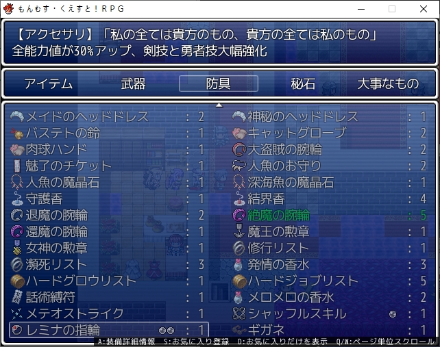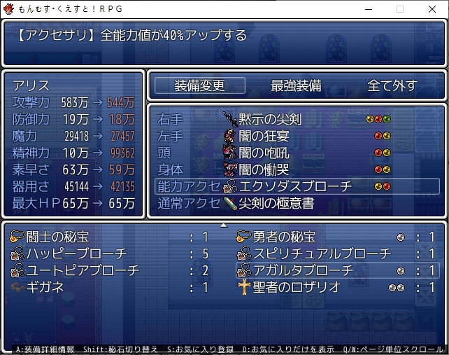 다음은 7대죄를 잡으러 왔습니다새롭게 체현자를 준비한거 아닌가 생각됩니다에바군요강욕의 체현자라고 합니다근데 생각보다 많이 약하네요도주합니다누군가 있던데7대죄에 대해 드디어 알려줍니다강욕의 경우 획득 경험치와 골드가 증가하는거였군요폭식은 포식관련이라 쓰기 애매하네요여기서 장신구도 얻는데무난한 효과입니다다음은 질투의 체현자로 등장합니다설마 나머지 5인도저기 석판도 보이네요템도 줍니다슬슬 뇌절인가 싶을 찰나 루시피나가 등장해서걍 패버립니다아이 시원해금벽도 하나 얻습니다그래도 탑은 올라가야 합니다오야지도 있고7대죄라 7층 넘게 있을줄 알았는데 다행히 6층이 끝입니다석판도 챙기고안쪽에 7대죄가 있습니다이기면 흡혈귀의 금벽을 얻을 수 있습니다욕망이란 어느 사람이던 가지고 있기 때문에 그걸 다스리기 위해 존재합니다욕망에 싸우는 자야말로 각오의 상징이라네요어느새 6명이나 잡았군요다시 한번 시간이 흐르는 이벤트가 나타나고리리스도 또 날뜁니다모든 사람들에게 극상의 행복을 주는게 사명이라네요마왕은 한발 늦습니다조사원단이 조사를 하고 있군요마왕도 있네요아미라에게 정보를 들어보면 레미나에 무슨 일이 있나봅니다생각해보니 에바도 놔두고 왔네요7대죄의 유전자를 분석했습니다흡혈귀는 서큐버스로부터 분화된 종이라고 하네요7대죄랑 접촉한 음마가 흡혈귀가 되었나봅니다그렇게 전종이 가능해지고대장간도 한단계 상승합니다이거 꽤 좋네요월드드로운을 잡으면 비석이 증가합니다7대죄도 증가하네요퀸에바도 챙겨주고레미나로 갔습니다유령선의 조사군요해군본부 왼쪽의 부두로 가면 됩니다배를 타고 유령선으로 가려는데이쪽은 뒷배가 든든해서 배에 태워줍니다강력한 요기가 느껴지는데이미 안쪽에 쓰러져계시네요오야지도 있고비밀장소도 있나봅니다안쪽에 누군가 있는데인형이 알아서 돌아와있습니다어캐한겨 거기다 농한 모습이였는데 상해있습니다자기도 마현사라서 알아서 풀 수 있었나봅니다 각지를 돌아 소재를 모으려고 하는데어림도 없지 바로 패버립시다얘도 슬슬 루카를 좋아하네요연구기록도 훔쳐갑시다아인에서 좀비로 페어리에서 고스트로 전종이 가능해집니다여기도 통과해서별 필요없는걸 주워갑시다레미나는 또 오라고 합니다가보면 여왕이 없네요여왕이 없는데 잠이오냐마왕이 납치했다고 합니다헬곤드의 사당에 있다고 합니다근데 길이 막혀있네요동굴과 지하가 연결되어 있다고 하니 거기로 갑시다전에 길을 막고 있던 돌은 사라져 있네요그전에 상자도 열었습니다템도 줍고올라가면 오야지가 있습니다드디어 도착했네요레미나가 멸망할걸 알고 있어서 여왕이라도 지키려고 데리고 나온거였습니다문제는 지금은 괜찮다는거겠죠제정신을 차리니 꽤나 복잡한 문제가 되어버립니다해서 때려패고 해결합시다어느새 3체 남았네요레미나를 안고 돌아가는데 이대로 모험을 할 수도 있습니다술렁이는 여성진대사도 꽤 많으니 즐길거리가 많습니다하지만 전 앨리스가 좋기 때문에 바로 데려다줬습니다반지도 받습니다레미나 학살의 주범은 날개를 뽑히고 있습니다꽤 좋은 효과를 가지고 있습니다루카전용이라 다른캐릭은 못끼네요
