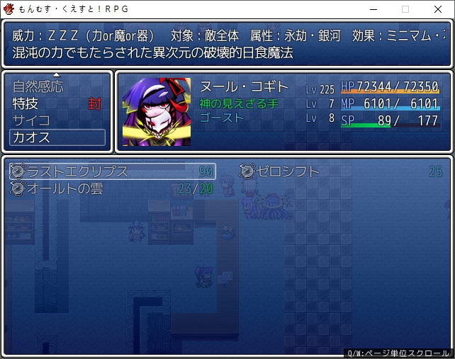 슬슬 누쿠로도 이길 수 있지 않을까 싶어서 왔습니다여기서 혼돈을 막고 있었지만 슬슬 한계가 다가왔군요누루코도 때려패줍시다종족쪽에도 강력한 방어어빌이 많기 때문에 확실히 버틸만해지더군요이기면 혼돈의 정령의 금벽을 얻을 수 있습니다여기도 혼돈의 힘을 꺼내쓰게되고자꾸 쓰지말라고 하지만 쓸 수밖에 없긴 합니다혼돈은 소멸되고루카를 걱정합니다성능은 역시 좋습니다강력한 계수의 스킬들도 가지고 있어서 좋네요금종도 급이 있어서 금종을 요구하는 금종이 있네요다음은 피라미드로 왔습니다안쪽에 가면 스핑크스가 있고문도 열어주고 동료가 됩니다황도천으로 들어옵니다여기도 하인리히가 있네요하인리히도 반성회를 했었군요오야지도 챙겨가면이자나미는 여기서 동료가 됩니다안쪽으로 가면 뜬금없이 도서관같은게 있는데사람마다 다르게 보인다고 하네요테로스도 옵니다이 영역에 누군가 와서 신경쓰인다고 하네요오류를 수정하러 왔다고 하지만 그래도 공격해옵니다너잘못이잖아그래도 인정은 해줍니다상대도 혼돈에 대해 경고할 정도로 위험하긴 합니다그리고 생사를 수정하는데 대가가 필요할거라고 하네요생과 사 둘다 크롬의 이름이 없어서 반생명존재가 된거라고 하네요사자의 서쪽에 크롬의 이름을 적는다면 죽는다고 합니다생사에 손을 댄 대가는 죽음이였군요생자의 서에 크롬의 이름을 못 먹은 이유도 사자를 적고 죽어서 입니다죽으려는 크로와를 말리고루카가 혼돈의 힘을 써서 수정을 합니다하지말라는데 계속 쓰긴 합니다역시나 멀쩡한 루카그런 방법 말고도 이런저런 방법으로 저주를 완화시킬 방법이 있을거라고 합니다생각해보면 우회법이 있을법도 하네요슬슬 피닉스도 잡을 수 있지 않을까 싶어서 공중을 날아다녔습니다조우율 5배끼면 그럭저럭 만나더군요피닉스로 각성중이라고 합니다16사상이 되어버린걸까요정확히는 다크피닉스에 빙의당한거라고 합니다골드화산 안쪽에 있다고 합니다룰브레이커가 있다면 될거라고 합니다쉬고있는걸 패줍시다룰브레이커로 찔러주면다크피닉스가 나타납니다이기면 하피의 금벽을 얻을 수 있습니다문젠 피닉스라 죽어도 다시 부활합니다또 꺼내쓰는 혼돈의 힘이젠 혼돈을 불러들이는 수준까지 왔다고 합니다피닉스까지 소멸시키는 힘이네요이젠 후유증도 없어지고 있습니다다크피닉스를 잡으면 상품이 추가되는데무려 씨앗을 살 수 있게 됩니다생각보다 비쌉니다그 다음은 노라이프킹을 잡으러 왔습니다이기면 좀비의 금벽을 얻을 수 있습니다자신을 망념의 산물이냐고 묻습니다시롬이 망설이는걸 크롬이 마무라해줍니다어느새 반이나 잡았네요파멸사상의 금벽을 얻습니다라크로와도 정식으로 동료가 됩니다슬슬 본래몸을 달라는 츠무기파티에 전력이 될지도 모른다고 합니다배신해봤자 털릴뿐입니다배신해도 걍 귀찮은 수준이 되어버렸네요폭탄도 잘 심어놨으니 괜찮답니다탑은 이제 들어갈 수 있게 되었네요사바사에서 싸웠던 히어로들이 찾는다는데야마타이의 찻집에 있다고 합니다대장간은 단계가 상승하고템도 수치 몇차이로 공 엄청 차이나네요찻집에 가보면 폭스와사무라이가 있습니다자기에게 마의 혈통이 있는데 고아라서 자신의 출신을 알고싶어 합니다아빠는 20년도 전에 골드포트쪽에서 죽었다고 합니다이름만 들어봤다네요엄마도 어릴적 유행병으로 죽었습니다템도 하나 받고목장쪽으로 가보자고 합니다마르케르스를 놀리는 루시피나찔릴 수 밖에 없습니다효과는 무난하네요목장쪽으로 가보면 사무라이가 있네요아빠쪽이 확실히 뭔가 있어보입니다고다르의 상인과 친했던거 같네요찾아가봅시다생각보다 대단한 사람이였는지 가계도가 도서관에 있을지도 모른다고 합니다다행히 코앞에 있네요눈치빠른 라자로가 빠르게 찾아냅니다이쪽의 자손이였군요갑자기 출신이 확 상승하네요언니라고 부르렴둘은 동료가 됩니다