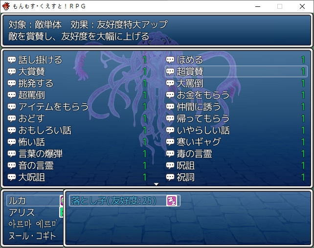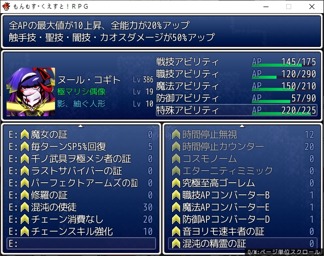 뭔가 퀘스트도 더 늘어나 있네요레미나로 가보면 북의 용사가 또 문제입니다아빠에게 가보면용암광산으로 갔다고 합니다골드화산말고 골드포트 서쪽으로 가야합니다그때 안쪽에 아무것도 없던 곳입니다안쪽에 이벤트가 생겨있네요둘이 같은 세계에서 왔다고 합니다구미는 하나만 존재할 수 있기 때문에 그 세계에선 타마모는 죽었단 소리가 됩니다육조와 신까지 모두 죽어버린 세계군요어쨌든 이 세계로 왔으니 마왕인 자기를 따르라고 합니다힘을 증명해서 따르게 합시다이기면 순순히 따릅니다저쪽 세계는 이름있는 종족들의 여왕들이 싸우고 있었군요거기에 가장 세력이 큰 종족은 엘프인가봅니다여기도 세긴 셉니다까먹고 있던 용사도 풀어줍시다또 안고가면서이쪽 여캐들도 날뜁니다침대로 살포시 돌려둡시다모험을 따라오겠다고 합니다그 후 루카는 꿈을 꾸는데정말 개꿈이네요콘스탄체에게 고백을 하면 그걸 가로막는 처자들이 나타나는 꿈입니다그런 개꿈을 꾸면새롭게 떠오르는 정실이 옆에 있었네요나탈리아포트로 가보면 봉사종족이 있습니다이젠 진짜 잡몹이네요다 잡으면 바다로 사라집니다이세계의 사신을 잡으러 갈 시간이군요월드드로운을 잡을때 들어가지 말라고 했던 그 장소입니다도움을 줬으니 리워드를 받아줍시다말을 걸면 시디를 받을 수 있습니다루루이에로 가봅시다문을 조사하면통로로 갈 수 있습니다오야지도 챙겨갑시다최고위 금종은 아예 올스텟을 올려주네요끝까지 가면 루루이에에 도착할 수 있습니다기분나쁜 장소네요동료화도 가능하니 챙겨갑시다여기서 뜬금없이 마암단야를 얻을 수 있습니다안쪽에는 보스가 있고크툴루였네요이기면 해서종의 금벽을 얻을 수 있습니다이겨도 멀쩡하네요혼돈을 힘을 쓰려는 루카를 막는 츠무기무슨 주문을 외우는데누군가가 튀어나옵니다하스타였군요그렇게 둘은 고차원영역의 싸움으로 넘어가며 사라집니다어느새 대부분의 초월자를 쓰러뜨렸네요크툴루를 잡으면 상품이 추가됩니다여기도 제작법을 보여주면동일하게 신급 레벨의 힘이 필요합니다다음은 서큐버스의 마을로 가려니사이렌이 울립니다월면기지에서 별을 먹는자가 접근하고 있다고 하네요바로 내일 도착이라고 합니다싱귤러리티안에 정보가 있어서 여러 대책을 준비했다고 합니다다리를 좀 다쳐서 도둑일을 부탁하는데의적이라 원래 주인에게 돌려주는 거라고 합니다돈달리아가 신전에서 훔친 3개의 반지를 찾아달라고 하는데일리아스겁니다바로 되찾아봅시다먼저 하나는 귀부인의 마을에 있습니다그때 안열리던 상자가 그거였군요근데 경비가 삼엄한데루카가 말을 거는 사이 일리아스가 그냥 훔쳐냅니다뭐하는 여신이지다음은 사바사 입니다여기네요누군가도 만납니다안쪽으로 들어가면 이미 다른 도둑이 들어 훔쳐갔습니다근데 그 도둑이 과거에 죽은 사람입니다멜티뱃의 스승이였네요다른 사람이 아닐까 생각합니다다음은 다리가 나았으니 같아 가자고 합니다그랜드노아로 가면 됩니다가보면 도둑을 볼 수 있습니다진짜 스승이였네요반지 내놔쫓아가봅시다화석광산으로 갔습니다안쪽에 계단을 내려가면저기 옆에 있네요오야지도 있습니다사실 요정왕이였습니다그냥 평범히 반지도 돌려줍니다그리고 또한이녀석이였습니다그 마르케르스도 놀라서 말이 안나왔다고 합니다정식으로 동료가 됩니다루시피나가 즐거워하는데무섭네요반지들은 천사들이 전용장비입니다효과도 발군입니다