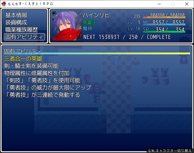 마루포트로 가보라고 합니다그전에 배틀신부터 갔습니다3번째는 콘스탄체였군요너였냐루카전용의 배틀상대가 되어준다고 합니다쳐렉은 70만 정도필요하네요마루포트로 가보면 제네식발키리가 있습니다바다에서 정체불명들이 튀어나오는걸막고있었습니다동쪽의 양의 섬쪽에서 오고 있다고 합니다뭔가 몬스터들이 튀어나와있네요실험체들이 반란을 일으켰다고 합니다너가 문제구나땅 자체는 자기가 샀다고 합니다정리를 해줍시다오만거 다 복사해놨습니다자아가 신기해서 자기가 클론인걸 알고 있습니다이녀석도 알고 있네요일리아스가 여길 다 밀어버리자고 합니다연구가치는 충분하다고 입을 텁니다다행히 먹혔네요 여기 주변에 결계를 치는걸로 마무리합니다템도 하나 받습니다다음은 월면기지로 갔습니다볼건 없으니 바로 안쪽으로 갑시다 여기서 새롭게 합일을 시도하는데이번엔 완벽합니다분리도 언제든지 가능하다고 합니다별을 먹는자도 때마침 도착합니다에너지덩어리라 언제든지 재생도 가능하다고 하네요하지만 코어가 있으니 거기가 약점이라고 합니다 가면으로 보호되고 있는 머리라고 하네요이겼는데 아무것도 안줍니다가면안은 예쁘네요그리고 다른 비밀병기도 도착합니다안에는 그랜드노아의 여왕이 타고 있습니다싱귤러리티의 무기를 써서 개조한겁니다다시 쓰러뜨리면 거인의 금벽을 얻습니다이쯤이면 쓴 에너지가 많아서 도망쳐야하는데열이 받았는지 아직도 밀고 들어옵니다먹을거에서 적이 되었네요또 다른 증원이 도착하는데허룡을 불렀네요강한 적이 있으니 오라고 했다고 합니다허룡이 진짜 세긴 셉니다이제 두명 남았는데 하난 허룡이고 하난 모르겠네요역시 ㅈ경이 문제입니다마도선과 함께 동료가 됩니다돌아오면 에덴이 뚱해있는데합일을 아직도 못했습니다에덴이 부족해서 라고 하네요역시 힘이 부족하다고 합니다지금은 불완전하니 성산 아모스에서 힘을 받아오라고 합니다혼자 알아서 갔다오라고 하지만영 안옵니다결국은 다시 산에 갑니다마지막 정상으로 올라가봅시다가보면 뭔 이상한게 있네요신의 전차라고 주장하는 이상한 놈들이 있습니다바로 패버립시다드디어 셋이 합일을 하고롱기누스를 3개나 들고 다니는 에덴이 됩니다다음은 죄인의 감옥으로 가봅시다하인리히의 자아찾기가 드디어 끝이 났나 봅니다안좋은 기억까지 모두 포용할 준비가 되었다고 합니다진정한 용사로 각성합니다좋아죽는 앨리스용사의 혼들이 공명을 하고새롭게 금직이 해금됩니다영웅왕의 금벽을 얻을 수 있습니다결착을 내기전에 혼돈의 신도 처치를 해놔야합니다이번엔 하인리히가 문을 열어줍니다검 - 왕 - 용사기로 이어지는 체인을 얻을 수 있습니다어빌은 용사기가 3연속으로 발동하는게 있습니다