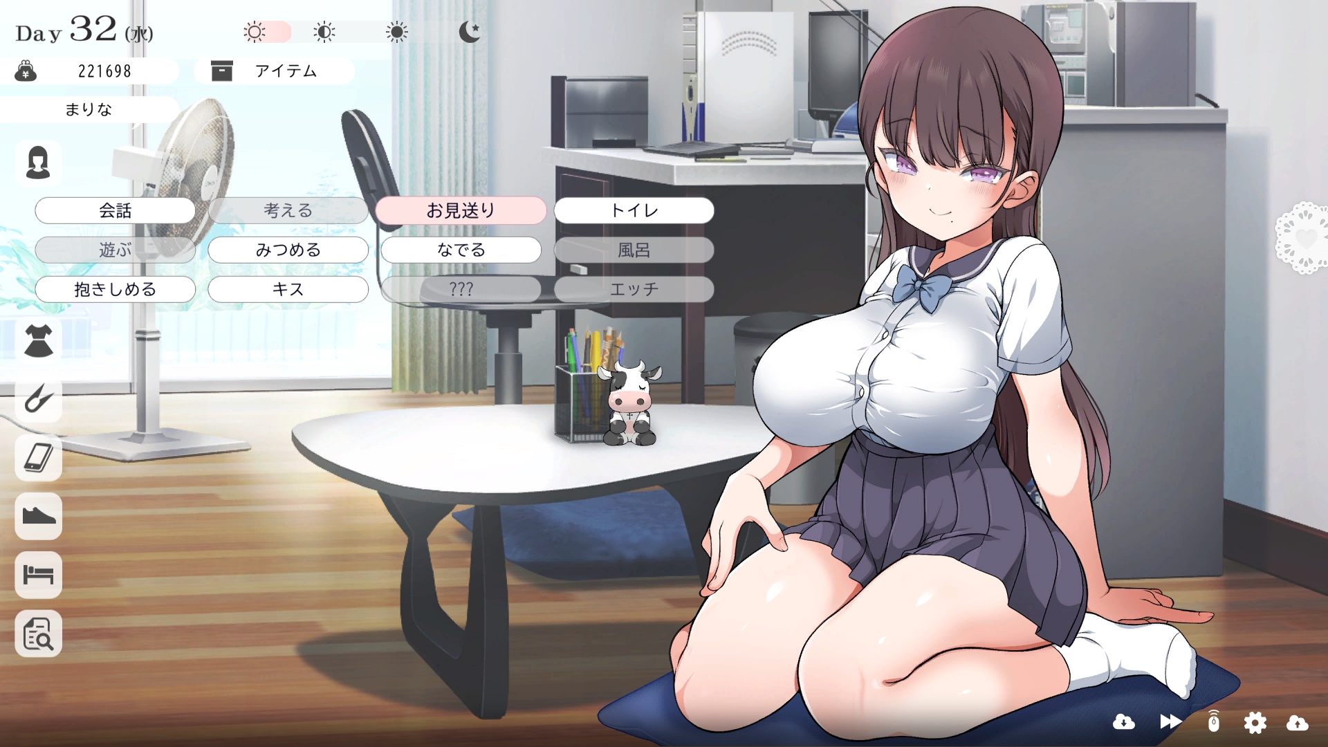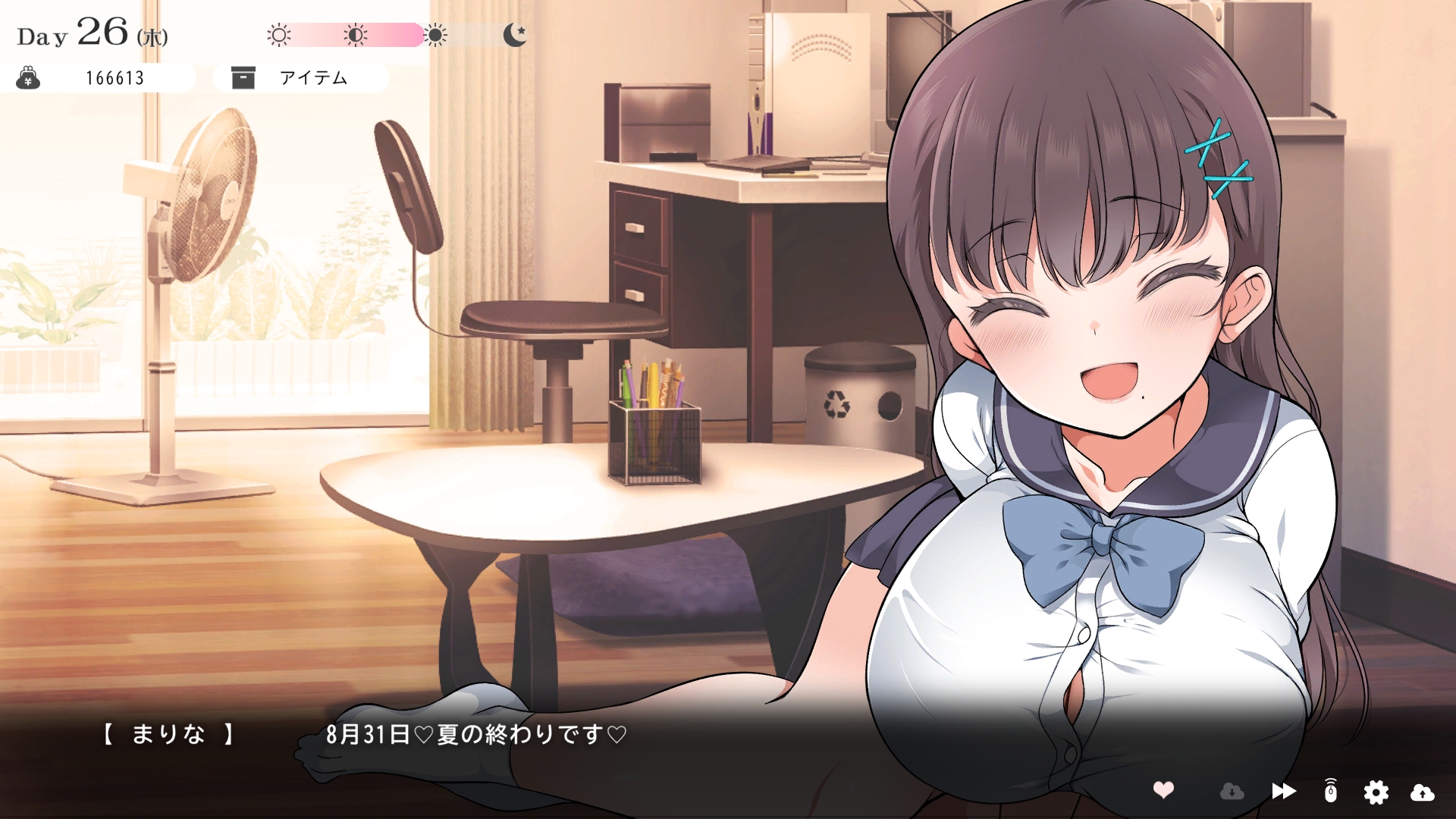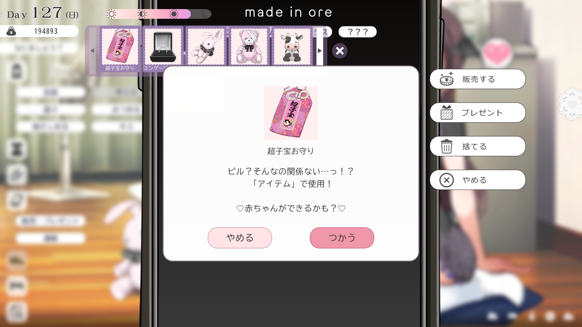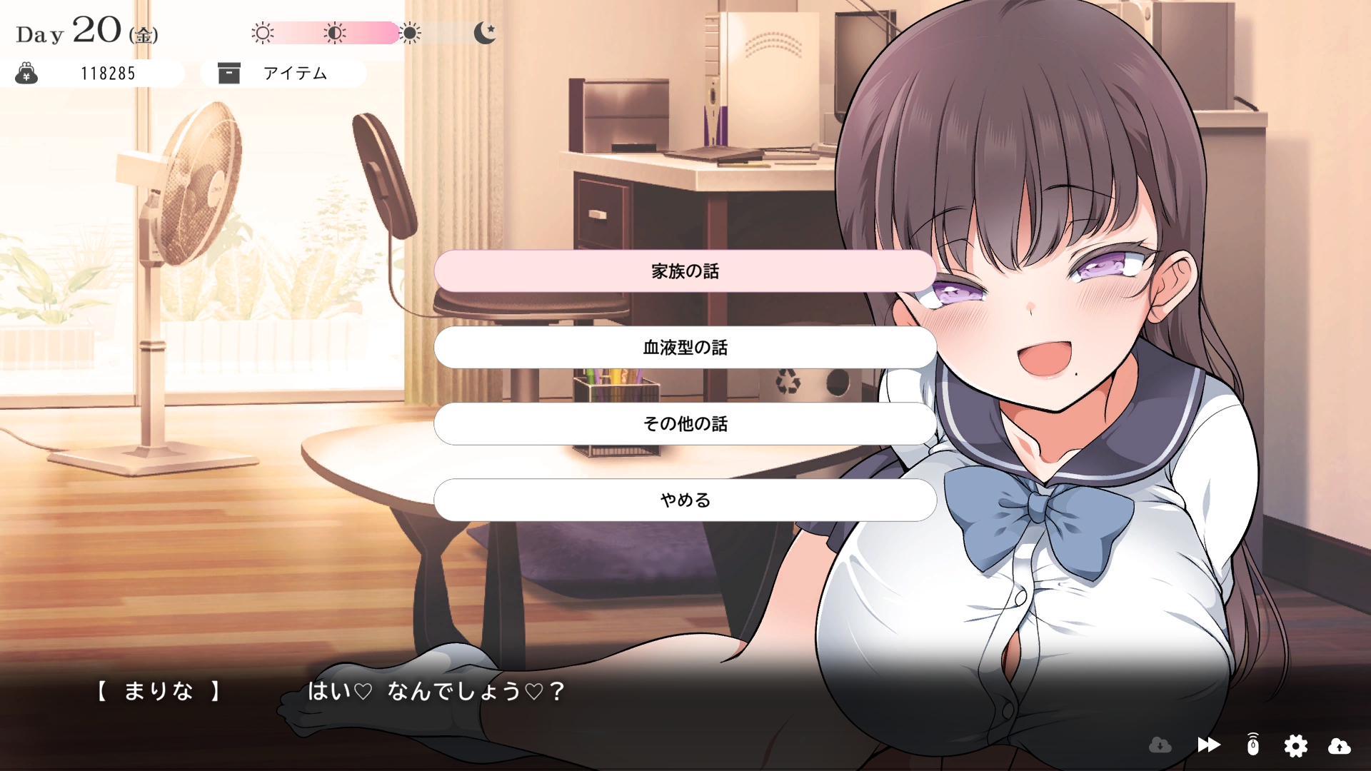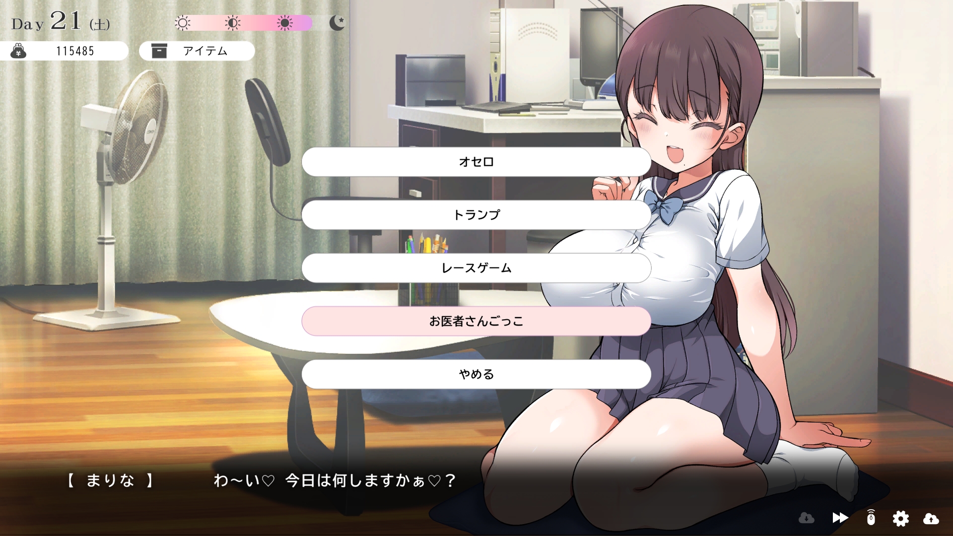 따지고 보면 주인공이 프러포즈를 한거니 책임을 지라는 마리나이때부턴 평정심도 깨집니다이제부터 새로운 생활이 시작됩니다궁금해서 다른 엔딩도 몇개 맛만 봤습니다바로 손대면 악녀도라는 히든 스테이터스가 오르네요바로 ATM으로 전락합니다엔딩을 보면 이전 마리나가 말한대로 모든 친척과 연을 끊고 혼자 살아가려고 하는데 솔직히 제대로된 생활을 할진 모르겠네요이것 저것 봤는데 크게 변하는건 없더군요다시 돌아오니 이것 저것 많이 생겼네요배웅도 해주고통판이 생겨있는데아마존이네요또한 이때부터 선물도 가능한가봅니다사랑하는 사람으로 변하고 이 후 호감도가 오르면 하트도 점점 늘어납니다다른 이야기들도 더 들을 수 있습니다밥은 더 근사해졌습니다주말의 외출도 마리나와 같이 갈 수 있습니다와이키키비치로도 갈 수 있네요책방은 별거 없었습니다 일정도는 책으로 좀 올리는게 낫더군요 100까지 깡으로 올리기 힘들었습니다이 뒤엔 카페도 갈 수 있습니다책같은건 여기서 써야하는데쓰면 한턴도 지납니다 영 좋진 않네요의사놀이도 해주고악세도 열심히 모아줍시다선택지가 나오긴하는데 그냥 이벤트로 보면 커피랑 피자를 잘 시켜먹더군요동거 초기 히든스텟으로 미열도가 있는데 저 하트이벤트를 죽 보면서 올려주면 됩니다옷갈도 가능한데 당장은 선물로 준 옷이 없어서 불가능하네요악세라도 입혀줍시다생일이 8월 31일이였군요일등급이 오르면 옷등급이 오르고 판매가가 훅 오릅니다 열심히 일을 해줍시다프로필도 잘 채워주고선물도 열심히 사줍시다집에 실제로 장식도 해줍니다공원도 갈 수있는데 오후에만 갈 수 있네요해안가도 가보고공원에도 놀러도 갑니다그렇게 죽 지내다보면 마리나도 준비가 됩니다이제 남자도 익숙해졌나보네요이제부터 더욱 본격적으로 즐길 수 있습니다여기서도 많은 옷들이 기다리니 열심히 사줍시다 다만 초기에는 오래 즐기진 못하더군요생각보다 개방되는 요소가 많습니다엣찌도를 올려야 밤일이 편해집니다열심히 감도도 올려주고오후때 마리나를 생각하면 이렇게 마중도 나갈 수 있습니다일도 3레벨이 되고드디어 다른 옷감소재를 살 수 있었습니다죽죽 개방을 해줍시다2레벨은 되어야 좀 할만합니다옷도 만들어서 선물을 해줬습니다와 인상이 바로 바뀌네요중간에 주인공의 옷을 선물해주는 이벤트도 있더군요요즘 지뢰계에 왜 이렇게 꽃히는지 모르겠습니다마지막은 특수인데속옷같긴한데 없이도 만들 수 있더군요 대체 무슨 옷인거지 참고로 옷감도 많이 안들어서 ㄹㅇ 무에서 유를 창조합니다온천도 놀러갈 수 있게 되네요이때까지 왜 따로자는진 모르겠지만 드디어 같이 잡니다유원지로도 놀러갈 수 있고호감도가 오르면 제쿠스이가 뭔 말인진 모르곘지만 이걸 사면 결혼을 할 수 있습니다결혼반지도 잊지 말고 사줍시다밤에만 선물가능합니다밤이 되어서 선물을 하면프로포즈가 가능합니다이건 왜 의상에 추가안되는지 모르겠는데 웨딩드레스도 나옵니다그렇게 결혼도 합니다욕구불만 스텟도 있네요열심히 일도 하고질투이벤트도 봅시다 몇몇 이벤트는 확률로 나오는거 같더군요칭호도 하나둘 챙기면서 이벤트를 봐줍시다음란도까지 최대한 올리면 아이도 만들 수 있습니다근데 생각보다 많이 비싸네요이거도 밤에 써주면 됩니다이 전 생활로 돌아갈 수 없으니 주의해주세요 참고로 쓰면 바로 임신됩니다 무슨 기적출산까지 무려 120일이나 되기 때문에 상점에서 10일을 건너뛰는 템을 팝니다 하나하나 사서쓰는거라 좀 귀찮더군요당장은 별 달라지는게 없습니다러브호텔도 생기네요죽 하다보면 프로필도 한번 더 바뀝니다 깨알같이 가슴이랑 엉덩이가 1씩 오릅니다마지막 ???은 뭔가 했더니 산부복이였군요 100일이 남으면 보테배 표현도 있습니다참고로 이걸로 입혀봤는데 어우 진짜 사고친 지뢰계같아서 엄청 좋았습니다10일을 열심히 노가다 해서 넘기면아이도 낳습니다 해피엔딩이네요