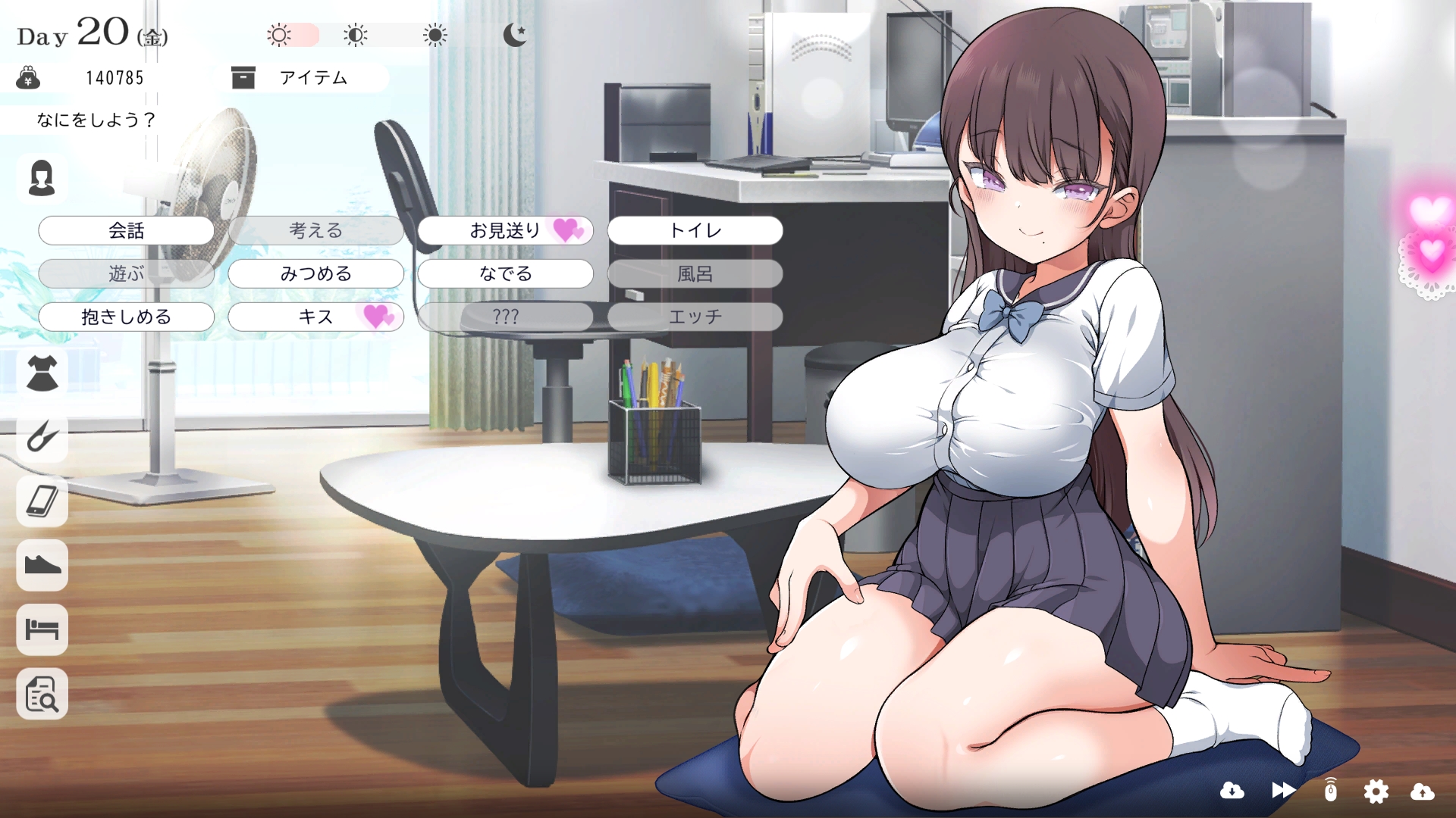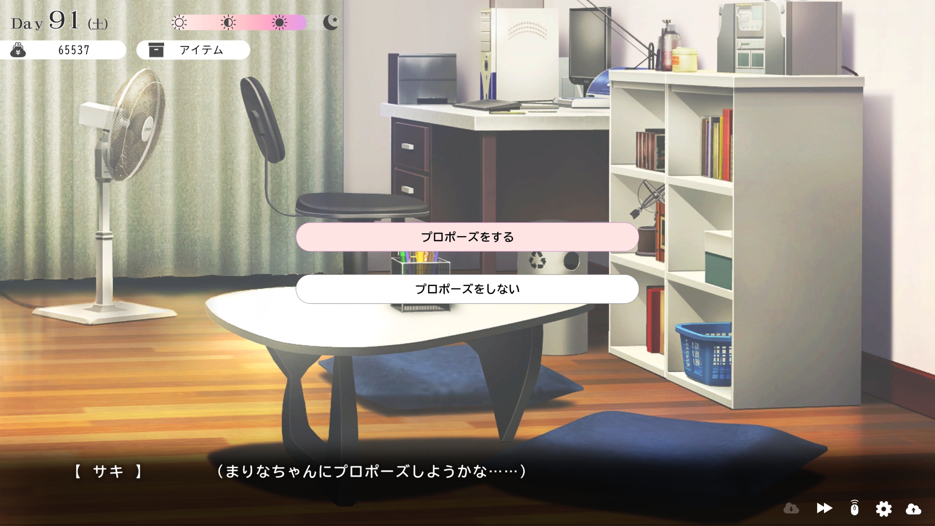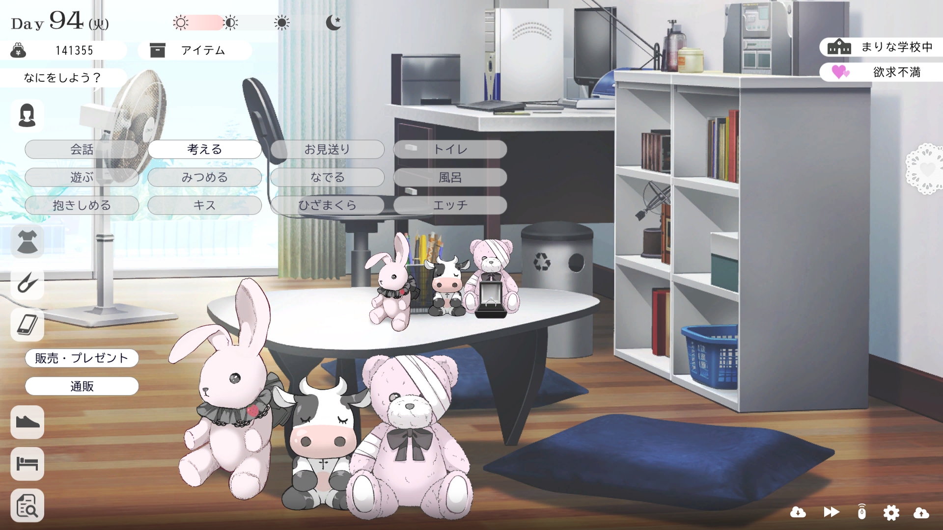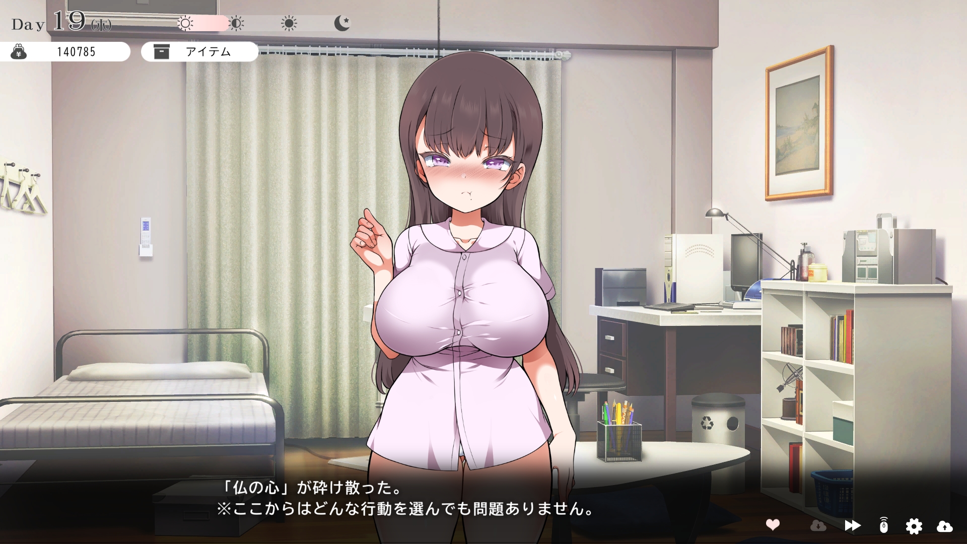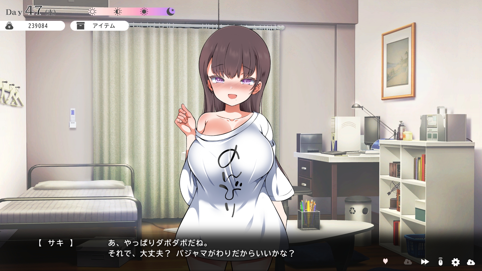 따지고 보면 주인공이 프러포즈를 한거니 책임을 지라는 마리나이때부턴 평정심도 깨집니다이제부터 새로운 생활이 시작됩니다궁금해서 다른 엔딩도 몇개 맛만 봤습니다바로 손대면 악녀도라는 히든 스테이터스가 오르네요바로 ATM으로 전락합니다엔딩을 보면 이전 마리나가 말한대로 모든 친척과 연을 끊고 혼자 살아가려고 하는데 솔직히 제대로된 생활을 할진 모르겠네요이것 저것 봤는데 크게 변하는건 없더군요다시 돌아오니 이것 저것 많이 생겼네요배웅도 해주고통판이 생겨있는데아마존이네요또한 이때부터 선물도 가능한가봅니다사랑하는 사람으로 변하고 이 후 호감도가 오르면 하트도 점점 늘어납니다다른 이야기들도 더 들을 수 있습니다밥은 더 근사해졌습니다주말의 외출도 마리나와 같이 갈 수 있습니다와이키키비치로도 갈 수 있네요책방은 별거 없었습니다 일정도는 책으로 좀 올리는게 낫더군요 100까지 깡으로 올리기 힘들었습니다이 뒤엔 카페도 갈 수 있습니다책같은건 여기서 써야하는데쓰면 한턴도 지납니다 영 좋진 않네요의사놀이도 해주고악세도 열심히 모아줍시다선택지가 나오긴하는데 그냥 이벤트로 보면 커피랑 피자를 잘 시켜먹더군요동거 초기 히든스텟으로 미열도가 있는데 저 하트이벤트를 죽 보면서 올려주면 됩니다옷갈도 가능한데 당장은 선물로 준 옷이 없어서 불가능하네요악세라도 입혀줍시다생일이 8월 31일이였군요일등급이 오르면 옷등급이 오르고 판매가가 훅 오릅니다 열심히 일을 해줍시다프로필도 잘 채워주고선물도 열심히 사줍시다집에 실제로 장식도 해줍니다공원도 갈 수있는데 오후에만 갈 수 있네요해안가도 가보고공원에도 놀러도 갑니다그렇게 죽 지내다보면 마리나도 준비가 됩니다이제 남자도 익숙해졌나보네요이제부터 더욱 본격적으로 즐길 수 있습니다여기서도 많은 옷들이 기다리니 열심히 사줍시다 다만 초기에는 오래 즐기진 못하더군요생각보다 개방되는 요소가 많습니다엣찌도를 올려야 밤일이 편해집니다열심히 감도도 올려주고오후때 마리나를 생각하면 이렇게 마중도 나갈 수 있습니다일도 3레벨이 되고드디어 다른 옷감소재를 살 수 있었습니다죽죽 개방을 해줍시다2레벨은 되어야 좀 할만합니다옷도 만들어서 선물을 해줬습니다와 인상이 바로 바뀌네요중간에 주인공의 옷을 선물해주는 이벤트도 있더군요요즘 지뢰계에 왜 이렇게 꽃히는지 모르겠습니다마지막은 특수인데속옷같긴한데 없이도 만들 수 있더군요 대체 무슨 옷인거지 참고로 옷감도 많이 안들어서 ㄹㅇ 무에서 유를 창조합니다온천도 놀러갈 수 있게 되네요이때까지 왜 따로자는진 모르겠지만 드디어 같이 잡니다유원지로도 놀러갈 수 있고호감도가 오르면 제쿠스이가 뭔 말인진 모르곘지만 이걸 사면 결혼을 할 수 있습니다결혼반지도 잊지 말고 사줍시다밤에만 선물가능합니다밤이 되어서 선물을 하면프로포즈가 가능합니다이건 왜 의상에 추가안되는지 모르겠는데 웨딩드레스도 나옵니다그렇게 결혼도 합니다욕구불만 스텟도 있네요열심히 일도 하고질투이벤트도 봅시다 몇몇 이벤트는 확률로 나오는거 같더군요칭호도 하나둘 챙기면서 이벤트를 봐줍시다음란도까지 최대한 올리면 아이도 만들 수 있습니다근데 생각보다 많이 비싸네요이거도 밤에 써주면 됩니다이 전 생활로 돌아갈 수 없으니 주의해주세요 참고로 쓰면 바로 임신됩니다 무슨 기적출산까지 무려 120일이나 되기 때문에 상점에서 10일을 건너뛰는 템을 팝니다 하나하나 사서쓰는거라 좀 귀찮더군요당장은 별 달라지는게 없습니다러브호텔도 생기네요죽 하다보면 프로필도 한번 더 바뀝니다 깨알같이 가슴이랑 엉덩이가 1씩 오릅니다마지막 ???은 뭔가 했더니 산부복이였군요 100일이 남으면 보테배 표현도 있습니다참고로 이걸로 입혀봤는데 어우 진짜 사고친 지뢰계같아서 엄청 좋았습니다10일을 열심히 노가다 해서 넘기면아이도 낳습니다 해피엔딩이네요