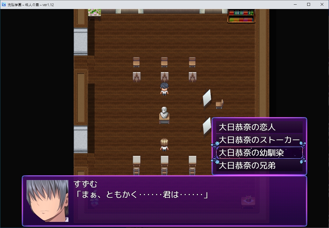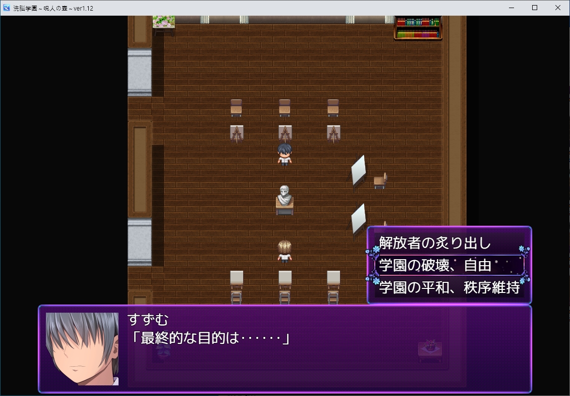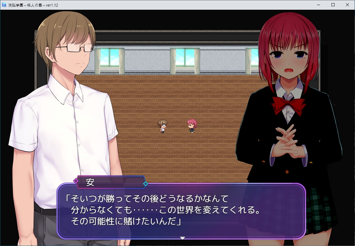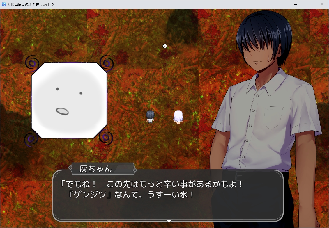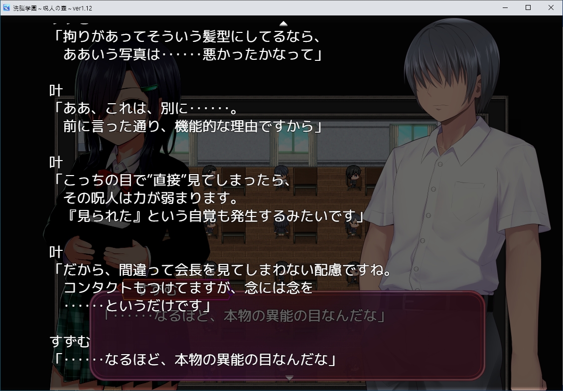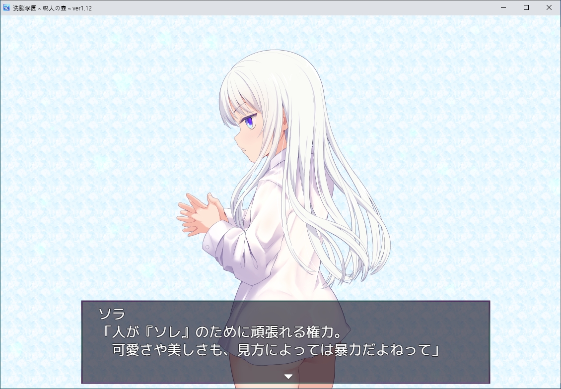안된다고 합니다선생은 못찍네요엄마를 찍을 수 있습니다그걸 인정해줍니다서로 소꿉친구라고 하네요남친도 원래는 조용한 아이라고 하네요 뭔가 연기인가 봅니다정보를 다 얻었다면 소라와 상담할 수 있습니다인간이 그걸 위해 노력하는 권력 귀여움이나 아름다움도 어떻게 보면 폭력이라고 하네요사실 저쪽은 우리가 이기길 원하고 있을 수도 있다고 합니다진행조건은 이렇게였네요그렇게 진행하는 사이 단계도 하나 올랐네요그 뒤로 학원이 본격적으로 이상해집니다템들도 왕창 떨어지네요단계가 올라 주인들도 생겨납니다여기도 하나 생겨났네요진행을 해보도록 합시다미끼가 움직이고 있으니 이쪽도 미끼를 풀어 불러봅시다드디어 만났습니다이쪽은 해방자에 세뇌된 메신저인척을 해줍시다저쪽은 확실히 맞지않은 연기중인지 눈이 떨리고 있네요둘은 소꿉친구고주인공의 정체를 확인하기 위해둘이서 상담을 해서학원을 파괴하고 자유롭게 되기 위해서 인거 같네요그럼에도 말을 제대로 하지 않는데다른 누군가의 저주때문인가?강제로 들을 수 있는데 이 루트에서는 선택이 불가능 합니다여기서 멈춤으로서 신뢰를 얻게 되고둘이 대면하게 됩니다사실 자기도 잘 몰?루자신의 뒤에 있는 사람이 제일 수상하다고 생각합니다만 아직은 정보가 적습니다어쨌든 힘을 받으려고 하는데 이상한 곳으로 갑니다뭐지 이건대화가 가능한 저수 저충입니다이번에도 과거 구경이군요딸을 최고로 키우고 있나 봅니다이기고 이겨라자신에게 관심이 없기 때문에 자해를 해서라도 관심을 끌고싶어하는데그 순간 야스시가 나타납니다딸리는 사람이랑 사귀지도 말라고 했나 보네요그렇게 친구랑 놀았다는 이유로 정신병원에 가려고 합니다 무섭네요좀 무섭긴 합니다그렇게 가출을 해버리고그 순간부터 뭔가가 보이기 시작합니다마음속에서 뭔가 소리가 들리는데계속 가챠가챠거리네요힘을 원하는가저주의 힘이 해방됩니다그렇게 사고가 일어나고그렇게 학원으로 데리고 갔나봅니다남친도 저주에 감염되었나봅니다그 뒤 해방자가 나타났네요그렇게 해방자가 나쁜사람인지 착한사람인지 시험해보려고 합니다이렇게 일평생 격리당하고 사는건 싫었나보네요해방자가 이긴다면 이 세계는 변할거라 그쪽에 걸기로 합니다즉 이 마을 전체가 거대한 병원같은 곳입니다아니면 군사시설일수도하지만 사라진 사람은 없기 때문에 병기취급까진 아닌가 봅니다 여튼 뭔가 있나보네요아니면 기억을 조작당해 원래부터 없었을지도 모르는 일입니다어쨌든 이 곳을 해방시키기 위해 어딘가 외국에서 온 스파이일거라고 생각했다고 하네요인권이 없는 우리들을 구해줄 해방자 그래서 해방자라고 부르고 있네요자신은 무서워서 바꾸지 못했다고 하네요그렇게 힘을 건네받습니다다시 여기로 오네요이녀석과 싸워서 힘을 흡수하도록 합시다생각보다 약하네요현실은 괴롭다고 하지만 어떻게든 해나갑시다근데 소라는 이녀석이 낯익다고 하네요뭔가 마음이 편해진 기분이 든다고 합니다주인공은 자신이 무의 능력이 아닐까 생각합니다폭의 주인도 장악했습니다