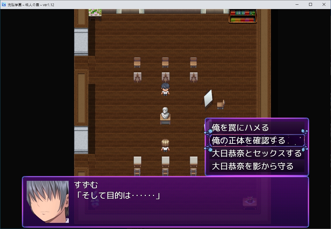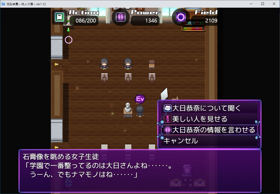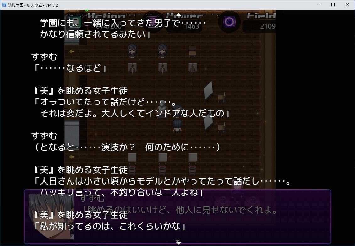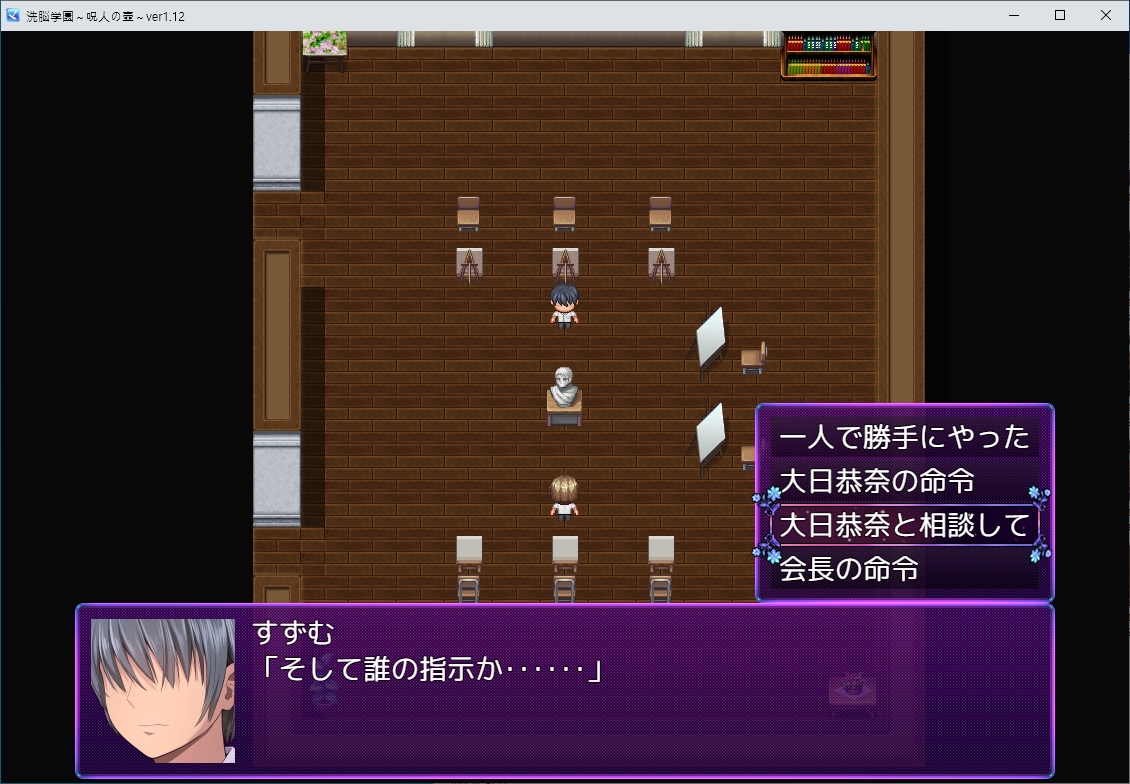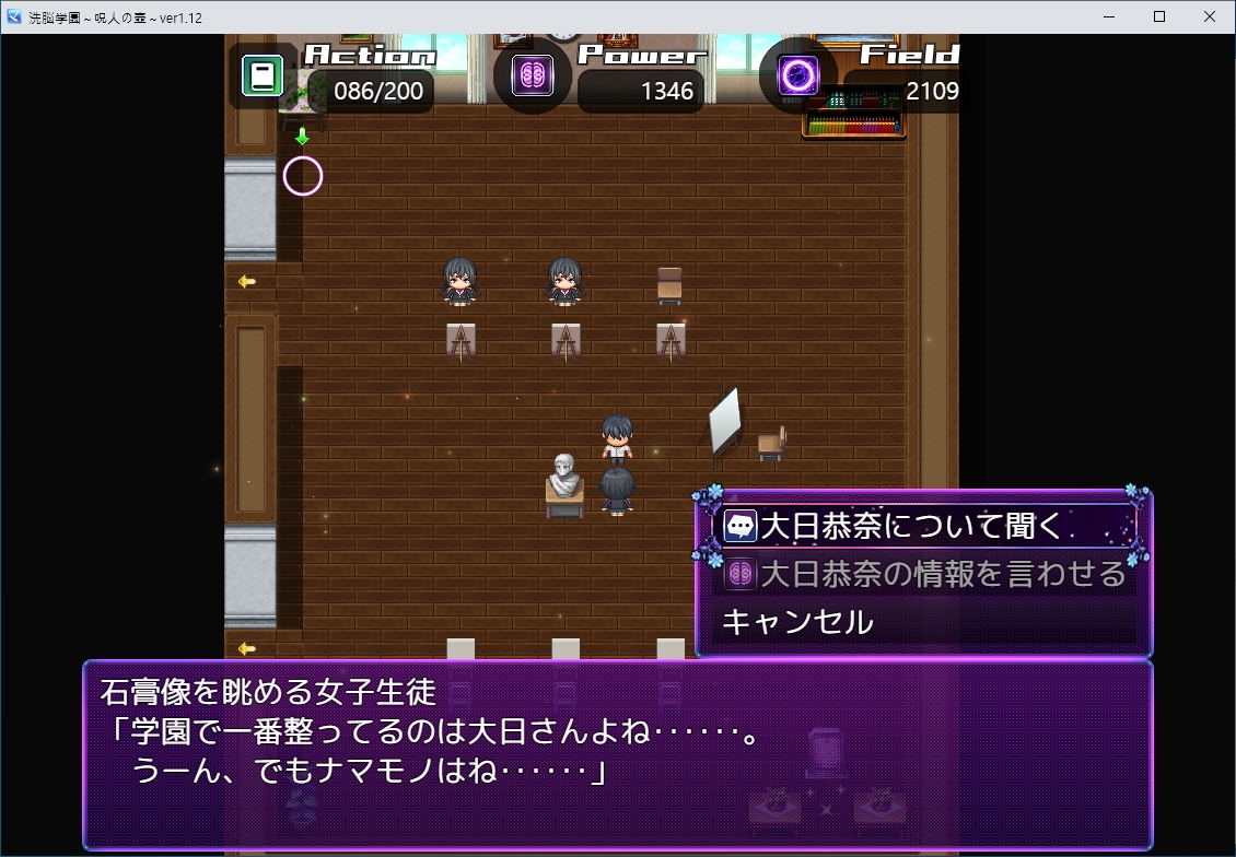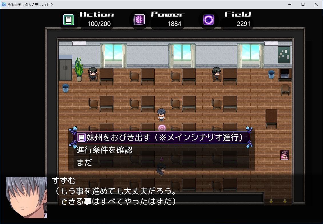 안된다고 합니다선생은 못찍네요엄마를 찍을 수 있습니다그걸 인정해줍니다서로 소꿉친구라고 하네요남친도 원래는 조용한 아이라고 하네요 뭔가 연기인가 봅니다정보를 다 얻었다면 소라와 상담할 수 있습니다인간이 그걸 위해 노력하는 권력 귀여움이나 아름다움도 어떻게 보면 폭력이라고 하네요사실 저쪽은 우리가 이기길 원하고 있을 수도 있다고 합니다진행조건은 이렇게였네요그렇게 진행하는 사이 단계도 하나 올랐네요그 뒤로 학원이 본격적으로 이상해집니다템들도 왕창 떨어지네요단계가 올라 주인들도 생겨납니다여기도 하나 생겨났네요진행을 해보도록 합시다미끼가 움직이고 있으니 이쪽도 미끼를 풀어 불러봅시다드디어 만났습니다이쪽은 해방자에 세뇌된 메신저인척을 해줍시다저쪽은 확실히 맞지않은 연기중인지 눈이 떨리고 있네요둘은 소꿉친구고주인공의 정체를 확인하기 위해둘이서 상담을 해서학원을 파괴하고 자유롭게 되기 위해서 인거 같네요그럼에도 말을 제대로 하지 않는데다른 누군가의 저주때문인가?강제로 들을 수 있는데 이 루트에서는 선택이 불가능 합니다여기서 멈춤으로서 신뢰를 얻게 되고둘이 대면하게 됩니다사실 자기도 잘 몰?루자신의 뒤에 있는 사람이 제일 수상하다고 생각합니다만 아직은 정보가 적습니다어쨌든 힘을 받으려고 하는데 이상한 곳으로 갑니다뭐지 이건대화가 가능한 저수 저충입니다이번에도 과거 구경이군요딸을 최고로 키우고 있나 봅니다이기고 이겨라자신에게 관심이 없기 때문에 자해를 해서라도 관심을 끌고싶어하는데그 순간 야스시가 나타납니다딸리는 사람이랑 사귀지도 말라고 했나 보네요그렇게 친구랑 놀았다는 이유로 정신병원에 가려고 합니다 무섭네요좀 무섭긴 합니다그렇게 가출을 해버리고그 순간부터 뭔가가 보이기 시작합니다마음속에서 뭔가 소리가 들리는데계속 가챠가챠거리네요힘을 원하는가저주의 힘이 해방됩니다그렇게 사고가 일어나고그렇게 학원으로 데리고 갔나봅니다남친도 저주에 감염되었나봅니다그 뒤 해방자가 나타났네요그렇게 해방자가 나쁜사람인지 착한사람인지 시험해보려고 합니다이렇게 일평생 격리당하고 사는건 싫었나보네요해방자가 이긴다면 이 세계는 변할거라 그쪽에 걸기로 합니다즉 이 마을 전체가 거대한 병원같은 곳입니다아니면 군사시설일수도하지만 사라진 사람은 없기 때문에 병기취급까진 아닌가 봅니다 여튼 뭔가 있나보네요아니면 기억을 조작당해 원래부터 없었을지도 모르는 일입니다어쨌든 이 곳을 해방시키기 위해 어딘가 외국에서 온 스파이일거라고 생각했다고 하네요인권이 없는 우리들을 구해줄 해방자 그래서 해방자라고 부르고 있네요자신은 무서워서 바꾸지 못했다고 하네요그렇게 힘을 건네받습니다다시 여기로 오네요이녀석과 싸워서 힘을 흡수하도록 합시다생각보다 약하네요현실은 괴롭다고 하지만 어떻게든 해나갑시다근데 소라는 이녀석이 낯익다고 하네요뭔가 마음이 편해진 기분이 든다고 합니다주인공은 자신이 무의 능력이 아닐까 생각합니다폭의 주인도 장악했습니다