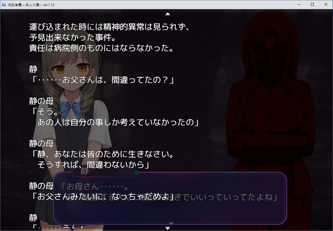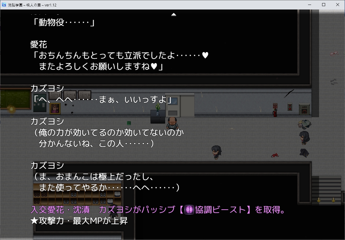 학원도 2단계에 진입했는데2단계로 가버려도 루트가 막힙니다 짜피 의미는 없지만요방법도 없으니 진행해봅시다저주가 더이상 통하지 않는데착취의 힘이 아닌 거래의 힘이라서 보상을 주지 않았기 때문에 멈췄나봅니다이쪽에 시험했을때 원하는게 없어서 의미가 없었나봅니다유우의 힘으로 모두를 재웠지만 이 상황이면 진거나 다름없긴 하네요메일이랑 폰도 쓰지 못하게 되었는데그렇게 나가는 유우를 주인공이 붙잡습니다그렇게 세뇌당해 위치를 말해버리고보스전을 치룹시다 소라는 버그인지 잠시 파티에 남아있더군요방어력이 세기 때문에 방무뎀으로 싸우는게 좋습니다이겼습니다급발진 온확실히 분위기가 다르네요자꾸 지들만 아는 이야기를 합니다진짜 뒤에 어른이 있었나보네요칼을 줍니다이걸로 심장을 찌르면 상대가 해방자인걸 알 수 있다는데 사람은 심장을 찌르면 죽어요이쪽도 급발진을 시작합니다드디어 마지막이네요A급 주인들을 관리할 필요가 없어져서 여유가 많아졌다고 합니다이제 수탈을 시작합니다참고로 진행을 주의해야 하는게 날짜를 넘길 수가 없습니다이제 안건데 이쪽으로 건너갈 수 있더군요직원실이 있고책도 있습니다내용은 여전히 뭔 소린지 모르겠습니다하나 남은거 같네요스토리를 진행하면 회장이 나타나는데칼로 모두를 찔러보고 있습니다이제부터 결전이 가능해집니다준비가 되었다면 학생회실로 가면 되는데칼좀 치우고 말하죠적이 생각보다 셉니다아니 개처발리는데강제승리가 가능하긴 하는데 너무 준비없이 왔네요이미 급발진도 시작되었으니 다른 이벤트도 봤습니다이녀석이 카즈요시였군요특이하게 주인공이 아닌 서브캐로 놉니다이녀석이 주인들과 놀면서 패시브스킬을 얻을 수 있습니다여기까지 건너갈 수 있는건 의외네요여우는 유지되고 있기 때문에 돈을 더 벌 수 있습니다 회차로 넘어가지 않으니 꼭 돈을 빼야합니다이율을 더욱 늘릴 수 있습니다문제가 여기서 날짜를 더 넘길 수가 없습니다주인공도 주인들과 놀면 강화가 약간 되긴 합니다만 귀찮긴 합니다결국 난이도를 내려서 보스를 잡아야겠네요이겼습니다그 뒤 선별을 시작하려는데회장이 자신을 희생해서 C엔딩으로 진입합니다눈도 대체 뭘까요회장의 과거도 볼 수 있습니다생각보다 크게 없긴하네요예전 첫사랑을 계속 찾으며 그림을 그리고 있었다고 하네요결국 정신병원에 들어갔나봅니다그렇게 회장이랑 열심히 놀면서학원이 거름으로 변하면서 끝이납니다엔딩자체는 갑자기 끝나네요다른 엔딩가이드도 나옵니다주회가 가능해집니다1회차는 해봤으니 선택지 서포트는 켜보겠습니다적색은 고르면 바로 나락이고 황색은 여러번 고르면 나락입니다