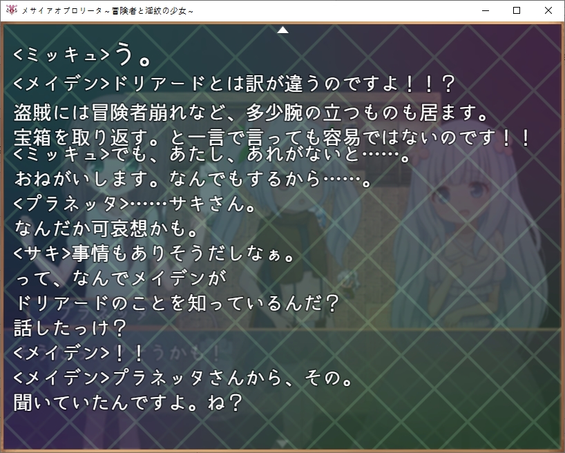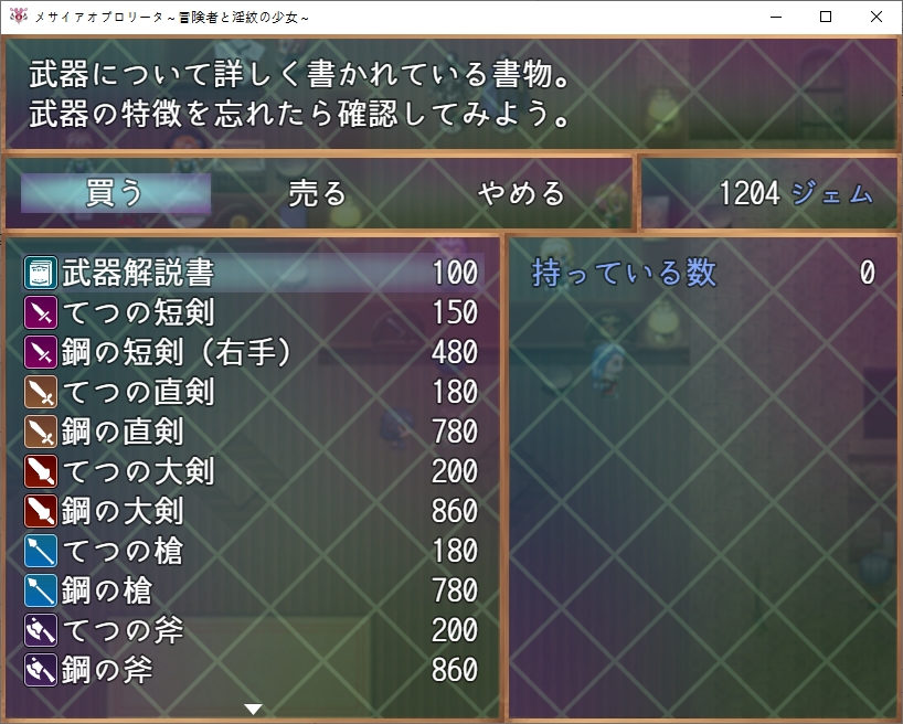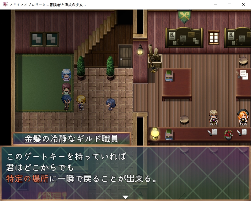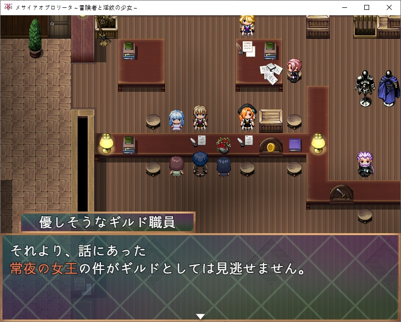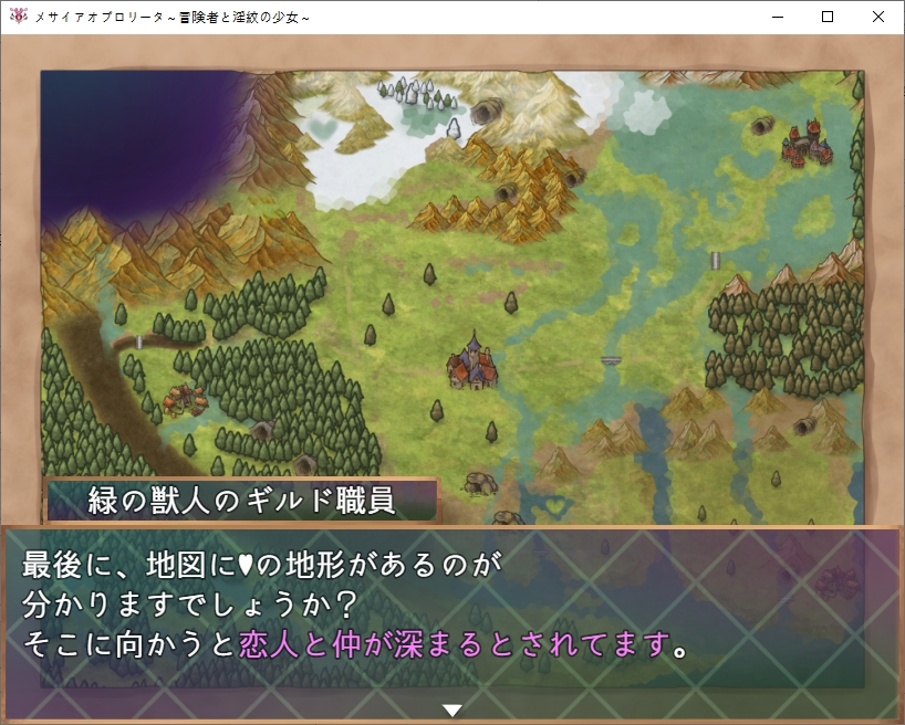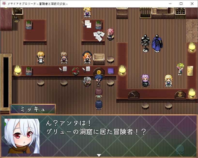 길드는 바로 위입니다돈도 바꿔주고소재도감도 받을 수 있습니다메이덴도 만날 수 있습니다상야의 여왕에 대한 목격정보도 알려줍시다문장에 대해 조사도 해봅시다여왕도 자매라면 납득이라는 이상한 소리도 했었습니다거울은 당장은 조사를 못하네요책장이 반짝이는데조사하면 기본기들을 배울 수 있습니다꽤나 무기군이 많네요채찍은 적을 다 공격할 수 있습니다이 디버프는 첨 보니 읽어봅시다기력소모량이 많아진다고 합니다문장자첸 사용자의 신체능력을 강화시키는 효과도 있다고 하네요 거기에 흡정을 버티는 주인공도 꽤 특별한가 봅니다상대는 꽤 고차원의 흡혈귀인가봅니다이번의 조사로 정보가 갱신됩니다또한 게이트키를 선물받는데그녀의 연인도 여왕을 조사하다가 행방불명이 되었다고 하네요이 게이트키가 있다면 특정장소로 워프할 수 있습니다방도 마음대로 쓰라고 합니다이런 석판이 게이트입니다나중에 기회가 된다면 돌아가보도록 합시다메이덴의 가호도 있네요놀 수도 있습니다거울은 뭔가 했더니 회상방이였군요전개방도 있기는 합니다상점도 둘러볼 수 있는데무기들이 많이 비싸네요ㅇ방어구는 비교적 싸니 방어구를 맞췄습니다명중률도 중요합니다이쪽은 지도를 설명해주더군요여기서 말해주는 순서대로 탐험을 하면 됩니다처음은 북동쪽으로 가는게 좋습니다또한 지도에 보이는 하트모양이 지형들은 연인과 인연을 더욱 깊게 만들어준다고 합니다집에서 물건도 훔쳐주고한 집은 퀘스트도 주네요자기 오빠를 찾는다고 합니다큰 여관쪽은 맨 위 방에서는 모험의 여신의 축복을 받을 수 있다는 소문이 돈다고 하네요여관쪽으로 가보면 이벤트가 있습니다메스가키가 있습니다마녀같아 보이는 엘프는 자기 집을 찾을 수 있다면 환영해준다고 합니다비싸네요메달도 있습니다정원도 있네요최상층 구경만 해봤는데 누가 방패를 놔두고 갔습니다1층에 물어보니 가져가도 된다고 합니다노예시설도 있네요이쪽으로 가보니 이벤트가 있습니다트레네 마을로 간다고 하네요아까본 엘프아이와 친해지고 싶나봅니다더 안쪽은 별거 없네요교회도 있습니다 반짝이길래 축복도 받아주고메달도 회수해줍시다초원 북서에 용이 보인다는 장소가 있다고 하네요여기 집는 파는건가 봅니다아파트의 방을 빌릴 수도 있는데 까먹고 빌려보진 않았네요 500젬입니다여기도 메달이 있습니다은밀의 약이란 것도 있다고 합니다 위험하니 아무에게나 알려주는 제조법은 아니라고 하네요다시 중앙으로 와보니 퀘스트가 있습니다아까의 용에 대한 소문이네요대장간도 있는데동철광석 10개를 가져다달라고 합니다다시 길드로 와보니 미큐가 자기의 보물상자를 도적단에게 도난당했다고 합니다우리가 그 의뢰를 맡아줍시다남쪽의 계곡평야로 가는 동굴에 도적이 있다고 하네요병사로 변장하고 있다고 합니다5000젬정도 줄 수 있다고 하는데도적단 퇴치의 의뢰비는 꽤 비싼가봅니다특이하게 메이덴이 드리아드에 대해 알고 있네요?여튼 도적은 상대하지 말고 잠입하는게 좋다고 합니다메인퀘와 서브퀘로 나뉘네요이녀석은 어디있나 했더니 노예시설 바로 왼쪽에 있었습니다선물을 주려고 합니다퀘스트도 받았으니 서쪽부터 다시 탐험을 해봅시다꽃밭이 있네요 여기서 선물을 만들어봅시다이 꽃에는 마물이 가까이 오지 못하게 하는 효과가 있다고 합니다피난처로도 활용되고 있기 때문에 관리도 되고 있다고 하네요동굴도 가봅시다여기서 광석을 챙길 수가 있고위쪽엔 퀘스트가 있네요남쪽의 늑대의 우두머리를 잡아보라고 합니다꽃장식을 선물로 줍시다오빠에 대해 잘 알고 있네요언젠가 직접 만들어 줄 날을 기다리며 이건 돌려줍니다마법내성장비입니다여기도 용에 대한 이야기를 하네요일단 마을로 돌아와서 게이트키를 찍어줬습니다집으로 다시 와보니 지하로 갈 수 있었네요내려가보면 아이템을 하나 얻을 수 있는데효과는 꽤 좋습니다 설명을 보니 주인공이 오기전까지 꽤 힘든 생활을 했나보네요생각해보니 저번에 막혀서 못갔던 곳도 왔습니다 별건 없네요로프 위쪽이였습니다안쪽에 메달이 있긴 합니다여기도 다시한번 와봤는데암만봐도 당장오는곳은 아닌가 봅니다일단 다시 돌아와서 마을의 남쪽으로 와봤습니다동굴도 있고길목에 병사도 있네요오른쪽에서 벌레의 특이개체를 잡으려고 하는데독에 대처를 하기 위해 해독제를 3개 가져와 달라고 합니다만들어 가면기술을 배울 수 있습니다남쪽의 동굴에도 광석을 캘 수 있네요뭔가 곡괭이도 있습니다일단 용을 찾기 위해 북쪽으로 와봤는데 여기 이상은 안가는게 좋아보입니다동굴도 있고높은곳에서 내려다보면 땅의 모양이 용모양이였네요서북쪽으로 더욱 가면 설원으로 가는 길이 있고아래도 길이 있네요저쪽은 상야로 가는 길이라고 합니다설산으로 가는 길 자체는 어렵진 않네요 다만 이 이상 탐험하기 위해서는 보온의 오브가 필요합니다석판에 저장만 해둡시다이건 꽤 비싸더군요더 왼쪽에는 상야를 구경할 수 있는 전망대가 있었습니다여기를 탐험하기 위해서는 가호의 오브가 필요하다고 합니다