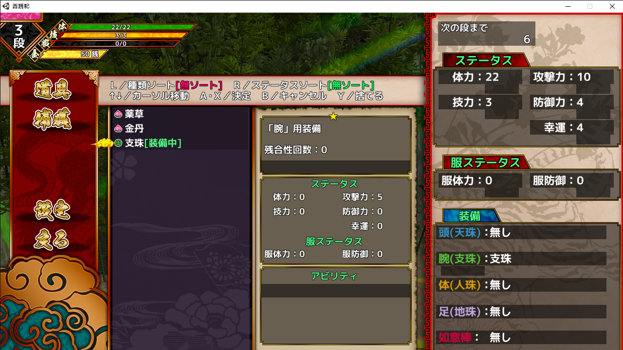 돌에서 태어난 돌숭이죽죽 이동합시다 RPG시스템입니다죽죽가서 화과산을 점령합니다 마사지를 해주면서 회복도적들을 정리하러 갑시다보스전도 있습니다이런저런데 숨겨진 템도 있더군요초반이니 딱히 게임에 영향을 미칠정도로 좋은 템은 아닙니다그러던중 동료가 하나 죽게 됩니다산적에게서 구한 동료는 상점이 됩니다불로불사의 술을 배우러 갑니다뒤쪽에도 길이 있으니 저장을 하고침입옷을 주긴하는데 이런건 그냥 합성아이템인듯 합니다죽죽가서 스승을 만나고옷은 수리하면 됩니다이런 잡템들은 합성시 쓰입니다죽죽가서벽타기를 배우고통과하면또 산적저장후분신술을 배우지만 약합니다불에 닿으면 데미지 적도 데미지를 입습니다저기 집안도 들어갈 수 있으니 들어갔다 옵시다보스는 열을 넘어 범위공격을 해오니 주의다음은 방중술을 배웁니다아래키를 누르면 유혹가능너무 놀다가 파문당합니다돌아오면 혼세마왕이 동료들을 잡아갑니다 중간에 템도 있으니 챙겨줍시다이때부터 포박도 가능한데 취향껏죽죽가면 보스전파문당한 사제도 옵니다장비강화를 도와주고 옷도 다들입혀줍니다다들 도와줍니다적의 단계가 경험치에 들어가고 경험치는 30으로 동일 10단계까지 강해집니다6렙장비가 최강이니 그냥 대충 발라줍시다이건 어빌리티 칸이 비어있을 경우 가능합니다아까 만난 새도 동료가 됩니다죽죽 오른쪽으로 가서무기를 주으러 갑시다여의를 줍고돌아가면 됩니다저기는 지금은 못갑니다구진템들이 있습니다돌아오면 바로 죽어서 지옥으로 가는데 전 동료가 반겨줍니다열심히 탐험오른쪽 끝부분은 누가 있는데감도삼천배비밀통로인줄 알았는데 버그임;; 이런게 가끔 있으니 주의왼쪽 위로 죽 들어가면 됩니다입이 약점첨에 뭔소린가 했는데 보고나서 이해했습니다수명이 352라는데 금방죽음아무튼 때립시다 손에 탈 수도 있습니다무큥다시 귀환 불에 태우고있네요거처로 돌아가면천계로 갈 수 있습니다대충 둘러보고리와의 약속을 지킵시다혼세마왕이 있던데 안쪽으로 가면이벤트후 하나가 도와주게 됩니다얜 좀 수상했는데 오공을 좋아하고 있군요옥황을 만납니다