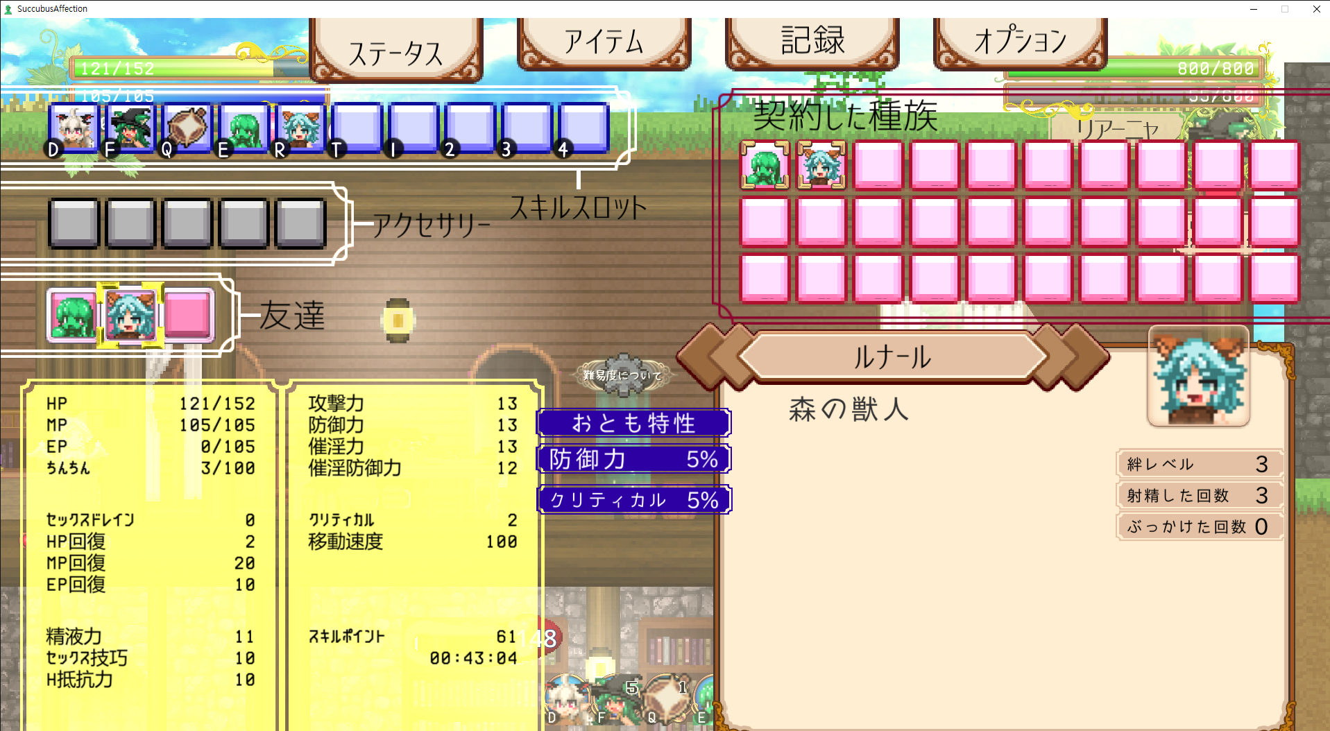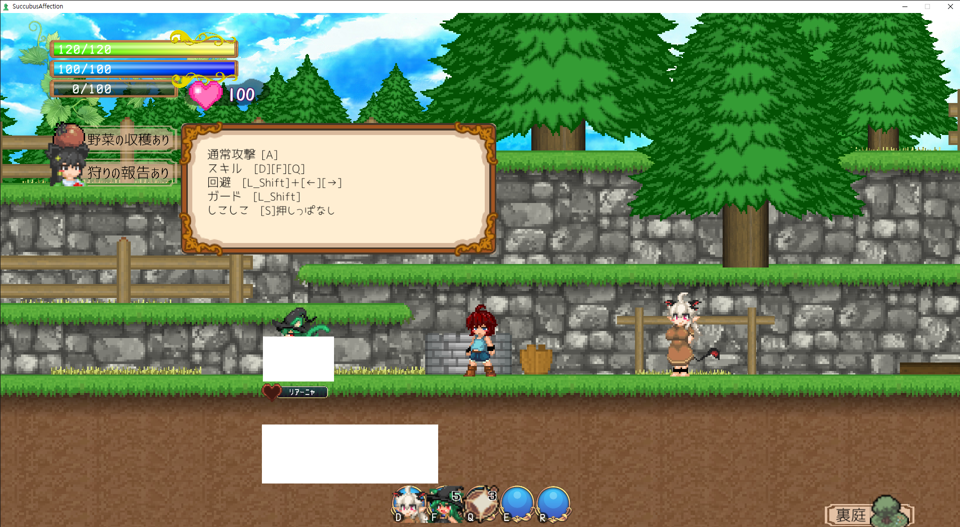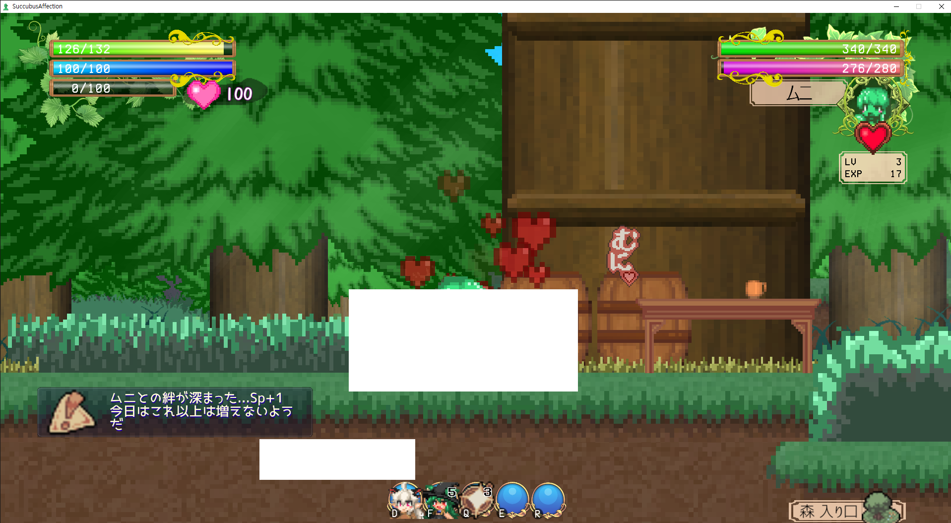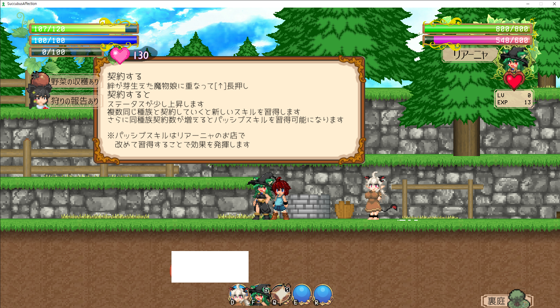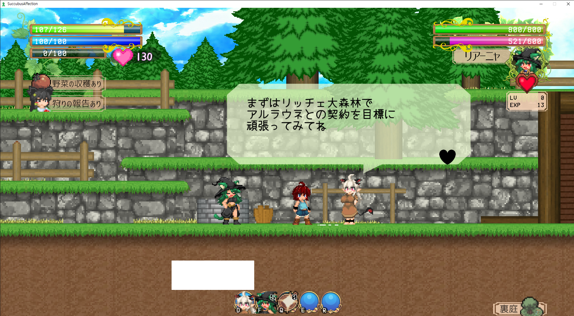 눈나랑 버섯캐라 갑니다키표시키가 매우 더럽습니다버섯캐다 알아낸 사실은 자신은 몬무스를 발정시키는 체질이라는것하지만 연을 만들면 괜찮답니다주인공의 안정을 위한 특훈이 시작됩니다대충 게임설명냥게약을 하면 스킬도 생겨서 좋습니다처음으로 해야할 일은 대삼림을 건너 알라우네랑 계약하는 것입니다난이도도 있는데 간단히 노멀로 했습니다일단 마을 구경부조 해보죠상점입니다재료를 조합해 만들어야 합니다 요리는 하루4번만 먹을 수 있으며 스텟을 영구히 늘려줍니다곰에게 말을 걸면 고기류 아이템을 주위 땅을 조사해서 유제품과 야채류 템을 주을 수 있습니다왼쪽으로 갑시다수집은 열심히 해주시고 초반엔 수집속도가 느려서 좀 답답합니다몬무스와도 우호도 다집시다인연레벨은 하루 3렙이 한계입니다 이건 올리면 스킬포인트를 줍니다죽죽해서 스킬을 주읍시다 패시브가 진짜 좋은것들이 많습니다방어력이 있는 적들도 만납니다구석구석 다니는것도 좋아보이네요이런곳에 템들도 있으니 주워줍시다친구를 설정해 스텟보너스를 얻을 수 있습니다스킬을 찍어줍시다 인연작을 열심히하면 부족할 일은 없더군요밥도 꾸준히 먹어주시고죽죽가면친구를 소개받습니다템줍줍하고여기는 나중에 숏컷입니다친구도 계속 만들어주고죽죽가서뭔가 내려가야할 곳같은곳으로 내려가면 보스전입니다저도 그냥 템있는줄레이즈를 쏘는데 갠적으론 까다로운 보스 순위권이 듭니다친구들은 멀찍이 구경중보스전은 하얀색을 먼저 채워야 합니다 즉 2페이즈까지 있습니다2단계는 꽃을 소환해 쏩니다난리났네 아주이기면 바로 스킬과 패시브를 줍니다강제귀환그다음은 계곡의 운디네입니다길을 알려주는 센스마을에 거점이 하나 생기고 거기 있습니다 FOBs에 있던 회상룸 비슷한 느낌입니다아까 휴게소에서 주은 마도서로 패시브를 배울 수 있습니다 개인적으론 채집수 증가부터 찍는게 나아보입니다다시 돌아와서 아래쪽에 못잡은 녀석들을 잡는데 골렘 더럽게 세네요마을 오른쪽으로 갑시다새친구들을 만나고죽가면 표지판이 나옵니다 아래로 가죠휴게소 찍고잠시 정비하러 오니 이벤트가 나오는군요저기도 숨겨진 템이 있었습니다위로가면 마을로 가는 숏컷이 있습니다여기는 운디네가 살곳입니다다시돌아와서 진행하면 운디네막 세진않았습니다 초반에 물로 방어를 치고있습니다2페이즈가 되면 물이 죽 올라옵니다승리는 했는데버그걸림다시꺳습니다다음은 금색의 여우와 계약입니다아까의 휴게소에서 위로가면 됩니다죽 진행합시다은근 여기는 숨겨진 공간이 많더군요여기도 있고중간의 거점짜증나는 미믹도 등장합니다여기도 숨겨진곳죽죽갑시다템도 줍줍하고승강기도 발견 숏컷입니다죽 위로가면여우가 있습니다 분신술과 순간이동을 써대서 귀찮습니다 하드모드에서 제일 셀듯합니다잡긴했는데 하필이면 위에 있습니다이럴땔 대비해 공중점프 증가템을 사뒀습니다그다음은 성여기서 오른쪽입니다죽죽 가줍시다성안에 가서이곳저곳 탐험해줍시다맵이 약간H모양으로 생겼습니다죽죽 안으로 들어가면 보스전70은 너무 유혹을 받으면 죽는듯합니다여우의 분신술 스킬이 너무 사기기 때문에 이기기 쉽습니다문젠 이기면 이상한데로 보내버리는 버그가 있습니다3트만에 겨우 계약했습니다여기에서 살게 됩니다마지막입니다곰이 있는 집 위쪽에 가면고원이 나옵니다중간에 휴식거점버그인지 설명이 이상함최종스킬셋팅 이게 젤 사기인듯합니다여기는 안보이는 길이 있네요죽가면 눈나가 있습니다마지막 시련입니다흥분한 누나노멀모드 기준으로 버프쓰고 스킬 다 돌리면 죽습니다클리어일러와 함께 끝뭔가 팬티도 있는데h좀 하고 말을 걸면 되더군요 한 5일치 정도 해야할겁니다도감은 뭔가 엄청비어있습니다둘의 팬티는 보스전을 다시하면 줍니다 여기는 버그가 여전하니 주의???두개가 남는데상점의 악마랑 곰앞에서 S키를 누르는걸 며칠 반복하면 됩니다
