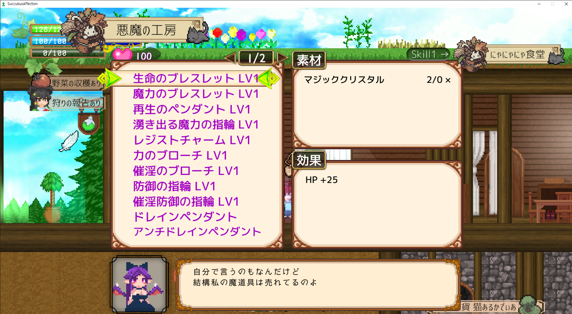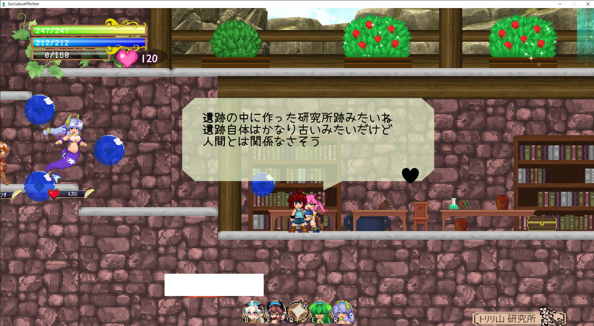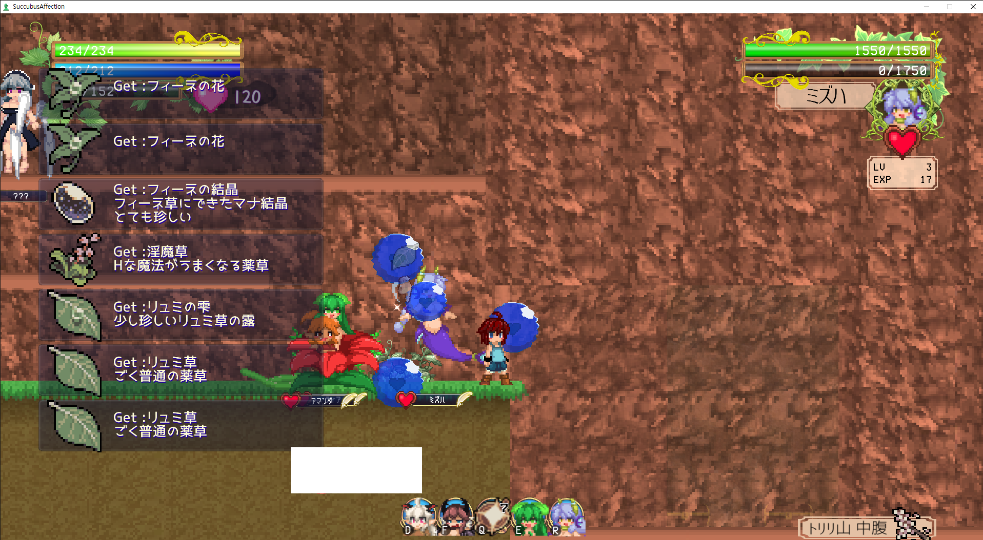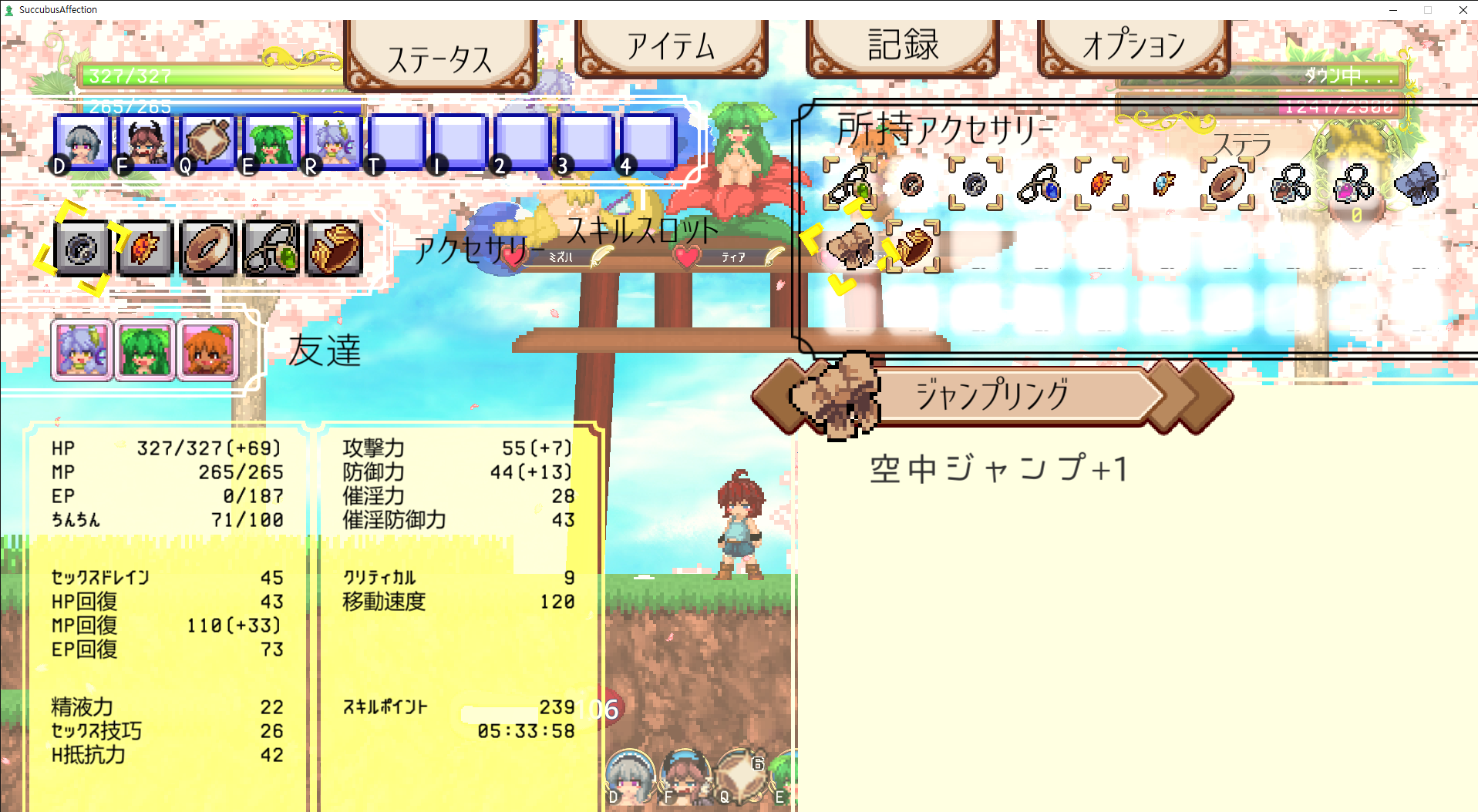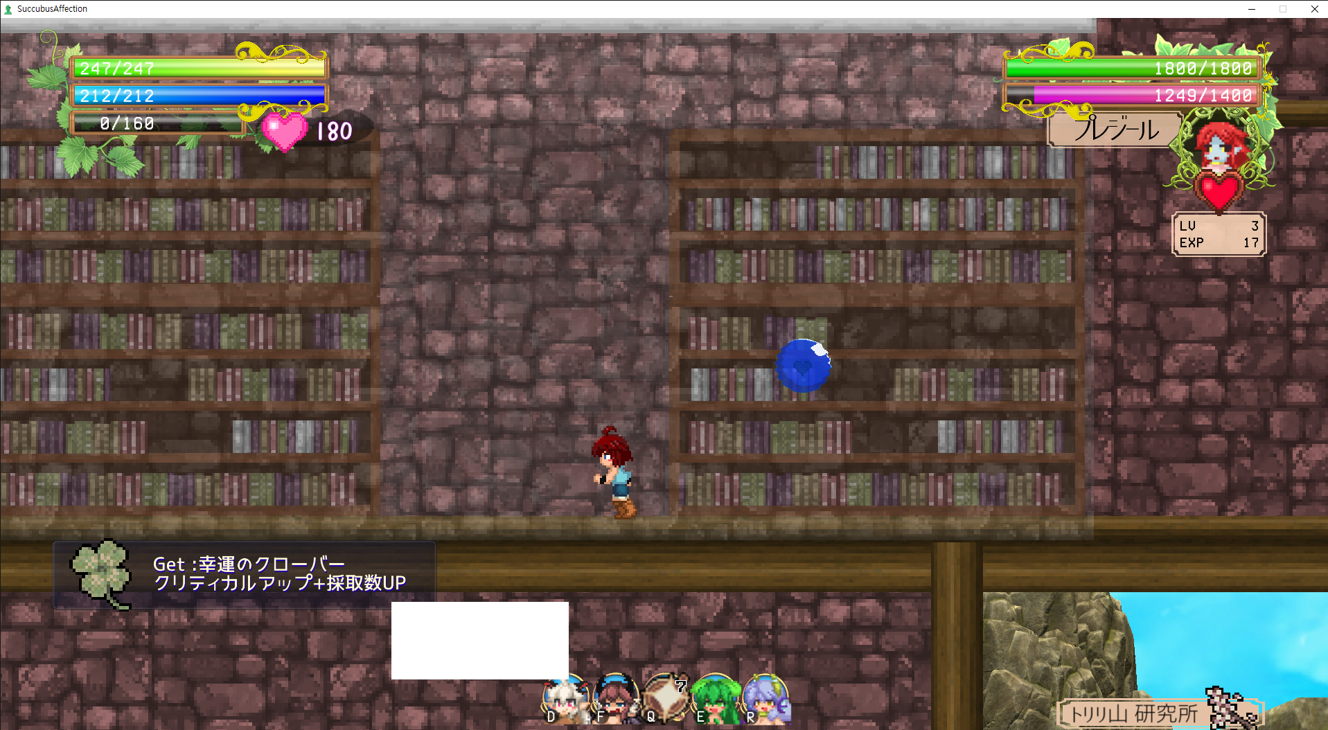 눈나랑 버섯캐라 갑니다키표시키가 매우 더럽습니다버섯캐다 알아낸 사실은 자신은 몬무스를 발정시키는 체질이라는것하지만 연을 만들면 괜찮답니다주인공의 안정을 위한 특훈이 시작됩니다대충 게임설명냥게약을 하면 스킬도 생겨서 좋습니다처음으로 해야할 일은 대삼림을 건너 알라우네랑 계약하는 것입니다난이도도 있는데 간단히 노멀로 했습니다일단 마을 구경부조 해보죠상점입니다재료를 조합해 만들어야 합니다 요리는 하루4번만 먹을 수 있으며 스텟을 영구히 늘려줍니다곰에게 말을 걸면 고기류 아이템을 주위 땅을 조사해서 유제품과 야채류 템을 주을 수 있습니다왼쪽으로 갑시다수집은 열심히 해주시고 초반엔 수집속도가 느려서 좀 답답합니다몬무스와도 우호도 다집시다인연레벨은 하루 3렙이 한계입니다 이건 올리면 스킬포인트를 줍니다죽죽해서 스킬을 주읍시다 패시브가 진짜 좋은것들이 많습니다방어력이 있는 적들도 만납니다구석구석 다니는것도 좋아보이네요이런곳에 템들도 있으니 주워줍시다친구를 설정해 스텟보너스를 얻을 수 있습니다스킬을 찍어줍시다 인연작을 열심히하면 부족할 일은 없더군요밥도 꾸준히 먹어주시고죽죽가면친구를 소개받습니다템줍줍하고여기는 나중에 숏컷입니다친구도 계속 만들어주고죽죽가서뭔가 내려가야할 곳같은곳으로 내려가면 보스전입니다저도 그냥 템있는줄레이즈를 쏘는데 갠적으론 까다로운 보스 순위권이 듭니다친구들은 멀찍이 구경중보스전은 하얀색을 먼저 채워야 합니다 즉 2페이즈까지 있습니다2단계는 꽃을 소환해 쏩니다난리났네 아주이기면 바로 스킬과 패시브를 줍니다강제귀환그다음은 계곡의 운디네입니다길을 알려주는 센스마을에 거점이 하나 생기고 거기 있습니다 FOBs에 있던 회상룸 비슷한 느낌입니다아까 휴게소에서 주은 마도서로 패시브를 배울 수 있습니다 개인적으론 채집수 증가부터 찍는게 나아보입니다다시 돌아와서 아래쪽에 못잡은 녀석들을 잡는데 골렘 더럽게 세네요마을 오른쪽으로 갑시다새친구들을 만나고죽가면 표지판이 나옵니다 아래로 가죠휴게소 찍고잠시 정비하러 오니 이벤트가 나오는군요저기도 숨겨진 템이 있었습니다위로가면 마을로 가는 숏컷이 있습니다여기는 운디네가 살곳입니다다시돌아와서 진행하면 운디네막 세진않았습니다 초반에 물로 방어를 치고있습니다2페이즈가 되면 물이 죽 올라옵니다승리는 했는데버그걸림다시꺳습니다다음은 금색의 여우와 계약입니다아까의 휴게소에서 위로가면 됩니다죽 진행합시다은근 여기는 숨겨진 공간이 많더군요여기도 있고중간의 거점짜증나는 미믹도 등장합니다여기도 숨겨진곳죽죽갑시다템도 줍줍하고승강기도 발견 숏컷입니다죽 위로가면여우가 있습니다 분신술과 순간이동을 써대서 귀찮습니다 하드모드에서 제일 셀듯합니다잡긴했는데 하필이면 위에 있습니다이럴땔 대비해 공중점프 증가템을 사뒀습니다그다음은 성여기서 오른쪽입니다죽죽 가줍시다성안에 가서이곳저곳 탐험해줍시다맵이 약간H모양으로 생겼습니다죽죽 안으로 들어가면 보스전70은 너무 유혹을 받으면 죽는듯합니다여우의 분신술 스킬이 너무 사기기 때문에 이기기 쉽습니다문젠 이기면 이상한데로 보내버리는 버그가 있습니다3트만에 겨우 계약했습니다여기에서 살게 됩니다마지막입니다곰이 있는 집 위쪽에 가면고원이 나옵니다중간에 휴식거점버그인지 설명이 이상함최종스킬셋팅 이게 젤 사기인듯합니다여기는 안보이는 길이 있네요죽가면 눈나가 있습니다마지막 시련입니다흥분한 누나노멀모드 기준으로 버프쓰고 스킬 다 돌리면 죽습니다클리어일러와 함께 끝뭔가 팬티도 있는데h좀 하고 말을 걸면 되더군요 한 5일치 정도 해야할겁니다도감은 뭔가 엄청비어있습니다둘의 팬티는 보스전을 다시하면 줍니다 여기는 버그가 여전하니 주의???두개가 남는데상점의 악마랑 곰앞에서 S키를 누르는걸 며칠 반복하면 됩니다