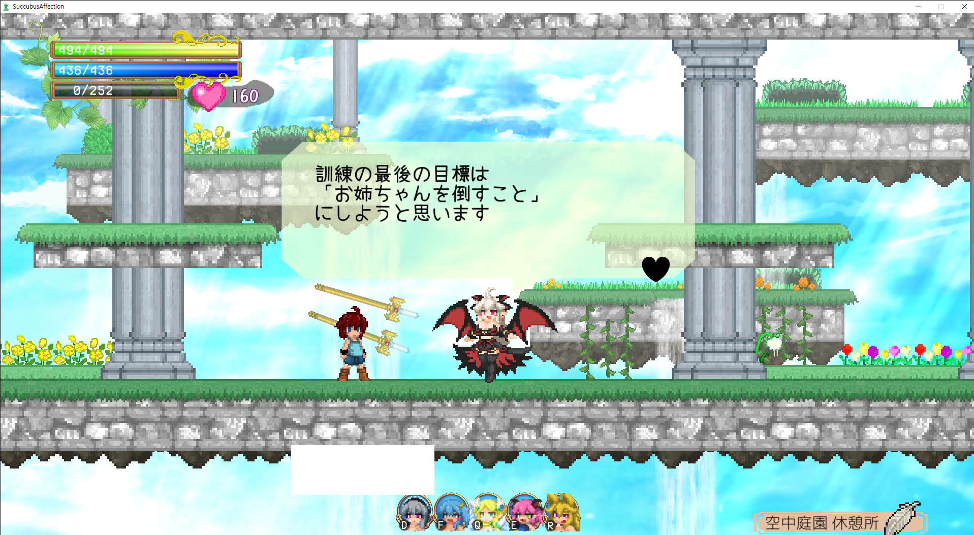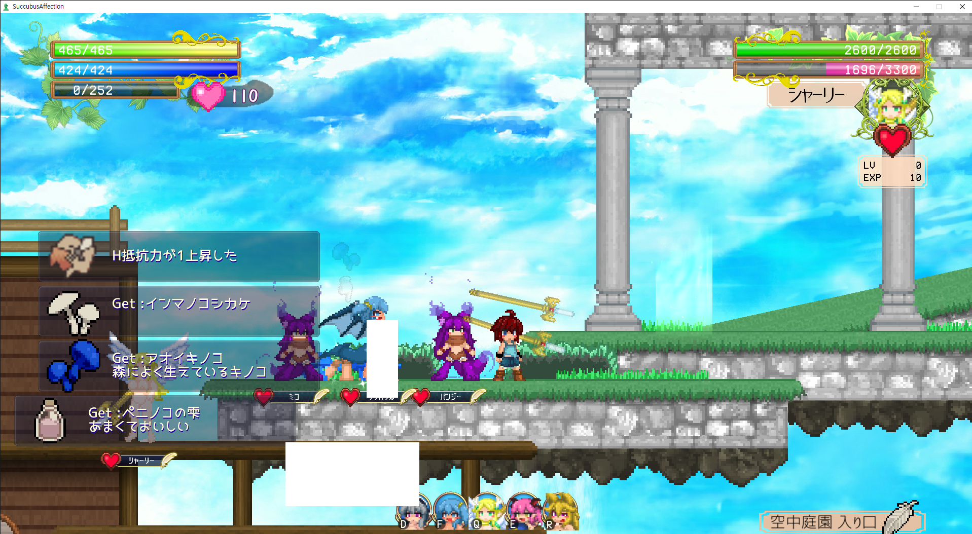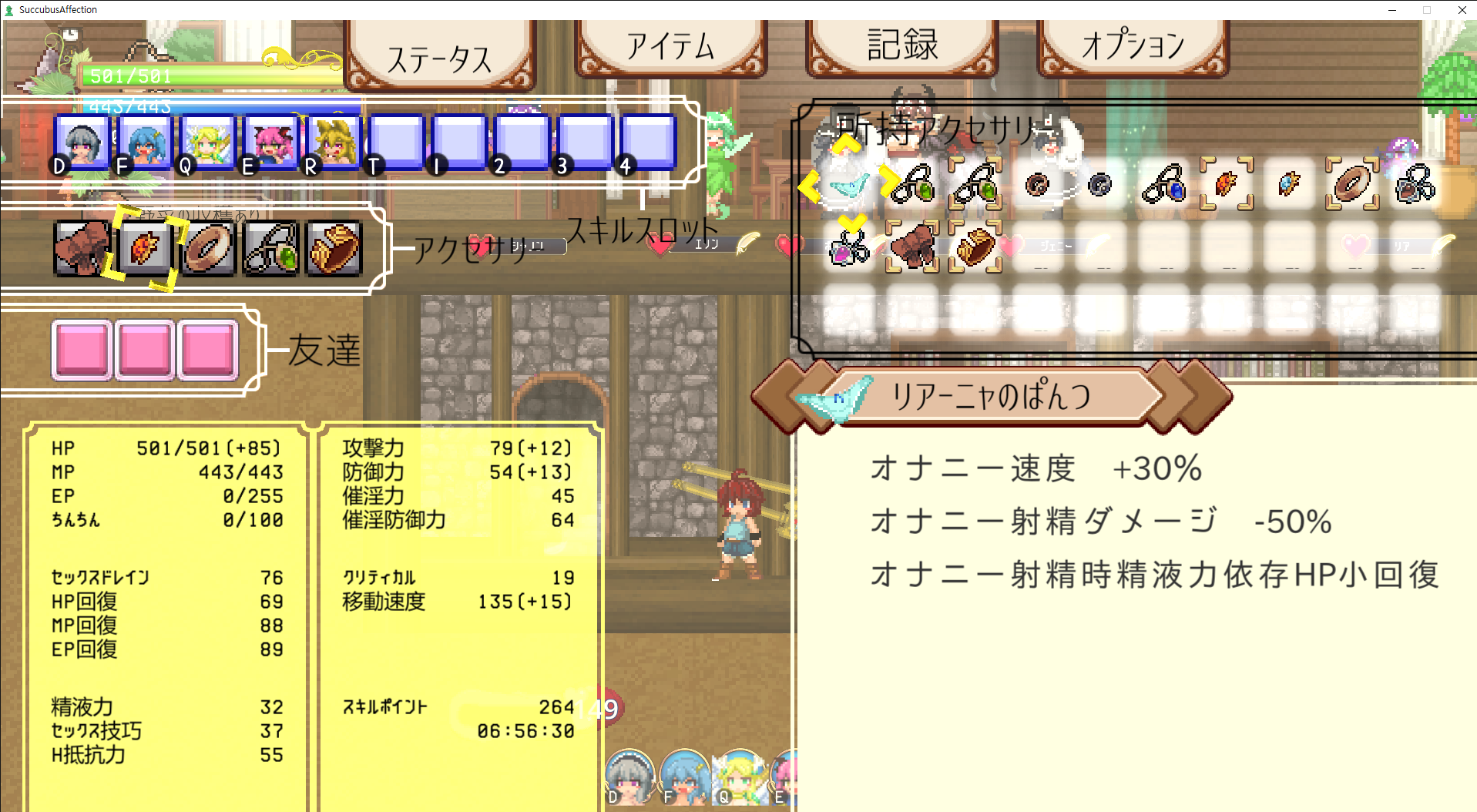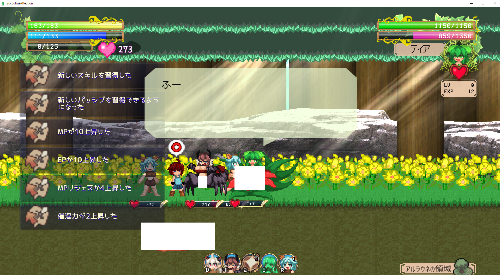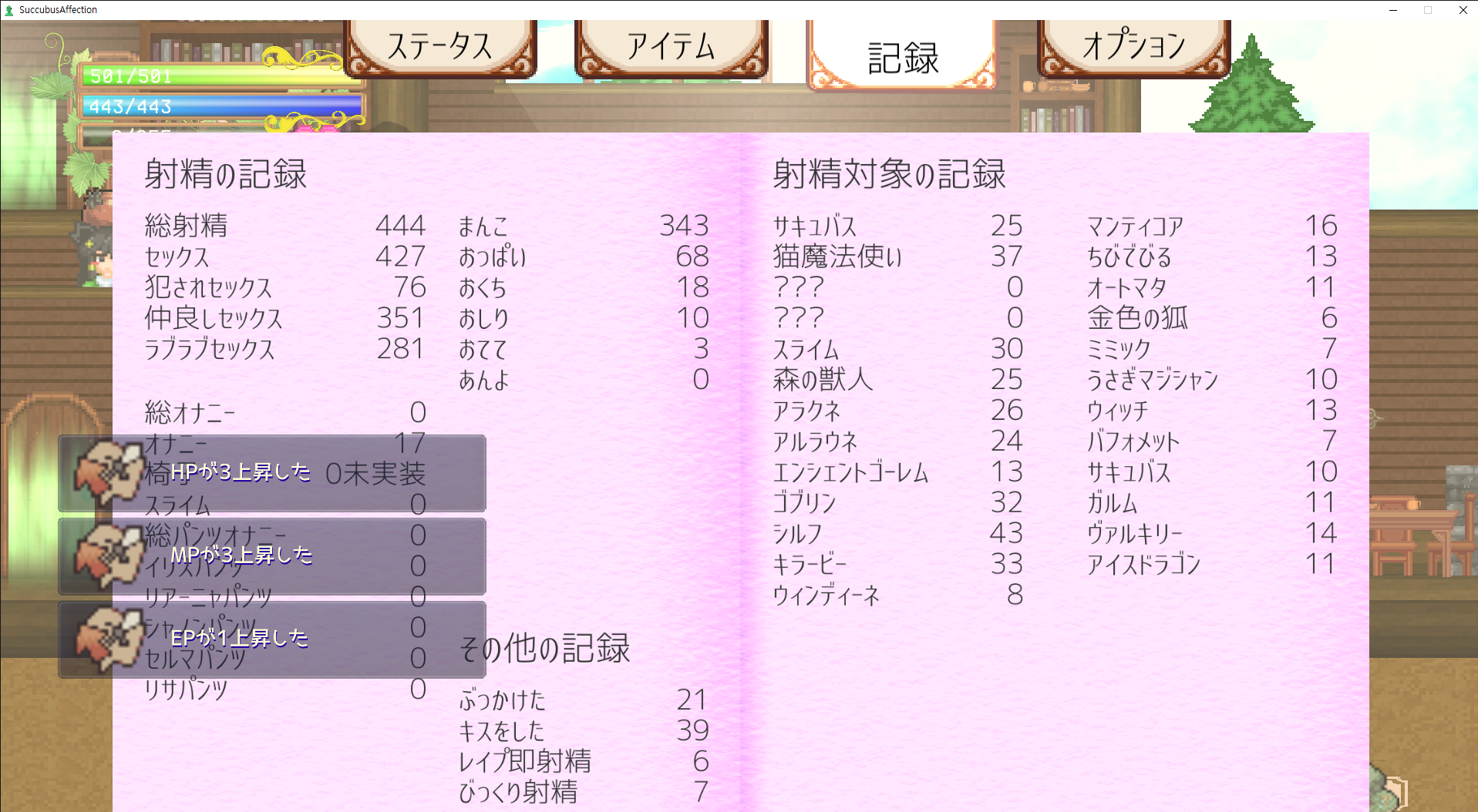 눈나랑 버섯캐라 갑니다키표시키가 매우 더럽습니다버섯캐다 알아낸 사실은 자신은 몬무스를 발정시키는 체질이라는것하지만 연을 만들면 괜찮답니다주인공의 안정을 위한 특훈이 시작됩니다대충 게임설명냥게약을 하면 스킬도 생겨서 좋습니다처음으로 해야할 일은 대삼림을 건너 알라우네랑 계약하는 것입니다난이도도 있는데 간단히 노멀로 했습니다일단 마을 구경부조 해보죠상점입니다재료를 조합해 만들어야 합니다 요리는 하루4번만 먹을 수 있으며 스텟을 영구히 늘려줍니다곰에게 말을 걸면 고기류 아이템을 주위 땅을 조사해서 유제품과 야채류 템을 주을 수 있습니다왼쪽으로 갑시다수집은 열심히 해주시고 초반엔 수집속도가 느려서 좀 답답합니다몬무스와도 우호도 다집시다인연레벨은 하루 3렙이 한계입니다 이건 올리면 스킬포인트를 줍니다죽죽해서 스킬을 주읍시다 패시브가 진짜 좋은것들이 많습니다방어력이 있는 적들도 만납니다구석구석 다니는것도 좋아보이네요이런곳에 템들도 있으니 주워줍시다친구를 설정해 스텟보너스를 얻을 수 있습니다스킬을 찍어줍시다 인연작을 열심히하면 부족할 일은 없더군요밥도 꾸준히 먹어주시고죽죽가면친구를 소개받습니다템줍줍하고여기는 나중에 숏컷입니다친구도 계속 만들어주고죽죽가서뭔가 내려가야할 곳같은곳으로 내려가면 보스전입니다저도 그냥 템있는줄레이즈를 쏘는데 갠적으론 까다로운 보스 순위권이 듭니다친구들은 멀찍이 구경중보스전은 하얀색을 먼저 채워야 합니다 즉 2페이즈까지 있습니다2단계는 꽃을 소환해 쏩니다난리났네 아주이기면 바로 스킬과 패시브를 줍니다강제귀환그다음은 계곡의 운디네입니다길을 알려주는 센스마을에 거점이 하나 생기고 거기 있습니다 FOBs에 있던 회상룸 비슷한 느낌입니다아까 휴게소에서 주은 마도서로 패시브를 배울 수 있습니다 개인적으론 채집수 증가부터 찍는게 나아보입니다다시 돌아와서 아래쪽에 못잡은 녀석들을 잡는데 골렘 더럽게 세네요마을 오른쪽으로 갑시다새친구들을 만나고죽가면 표지판이 나옵니다 아래로 가죠휴게소 찍고잠시 정비하러 오니 이벤트가 나오는군요저기도 숨겨진 템이 있었습니다위로가면 마을로 가는 숏컷이 있습니다여기는 운디네가 살곳입니다다시돌아와서 진행하면 운디네막 세진않았습니다 초반에 물로 방어를 치고있습니다2페이즈가 되면 물이 죽 올라옵니다승리는 했는데버그걸림다시꺳습니다다음은 금색의 여우와 계약입니다아까의 휴게소에서 위로가면 됩니다죽 진행합시다은근 여기는 숨겨진 공간이 많더군요여기도 있고중간의 거점짜증나는 미믹도 등장합니다여기도 숨겨진곳죽죽갑시다템도 줍줍하고승강기도 발견 숏컷입니다죽 위로가면여우가 있습니다 분신술과 순간이동을 써대서 귀찮습니다 하드모드에서 제일 셀듯합니다잡긴했는데 하필이면 위에 있습니다이럴땔 대비해 공중점프 증가템을 사뒀습니다그다음은 성여기서 오른쪽입니다죽죽 가줍시다성안에 가서이곳저곳 탐험해줍시다맵이 약간H모양으로 생겼습니다죽죽 안으로 들어가면 보스전70은 너무 유혹을 받으면 죽는듯합니다여우의 분신술 스킬이 너무 사기기 때문에 이기기 쉽습니다문젠 이기면 이상한데로 보내버리는 버그가 있습니다3트만에 겨우 계약했습니다여기에서 살게 됩니다마지막입니다곰이 있는 집 위쪽에 가면고원이 나옵니다중간에 휴식거점버그인지 설명이 이상함최종스킬셋팅 이게 젤 사기인듯합니다여기는 안보이는 길이 있네요죽가면 눈나가 있습니다마지막 시련입니다흥분한 누나노멀모드 기준으로 버프쓰고 스킬 다 돌리면 죽습니다클리어일러와 함께 끝뭔가 팬티도 있는데h좀 하고 말을 걸면 되더군요 한 5일치 정도 해야할겁니다도감은 뭔가 엄청비어있습니다둘의 팬티는 보스전을 다시하면 줍니다 여기는 버그가 여전하니 주의???두개가 남는데상점의 악마랑 곰앞에서 S키를 누르는걸 며칠 반복하면 됩니다