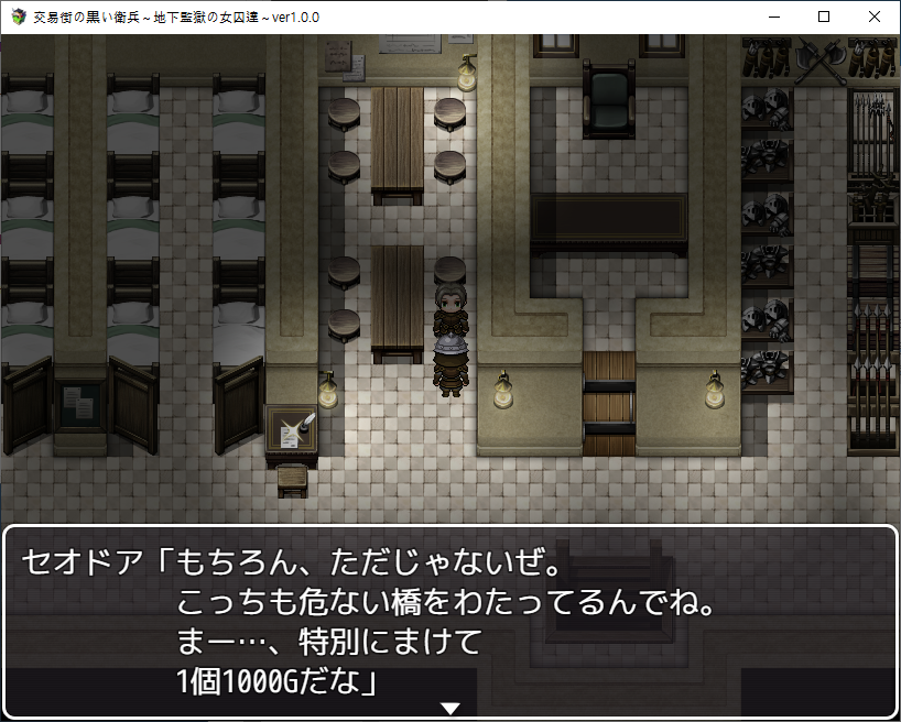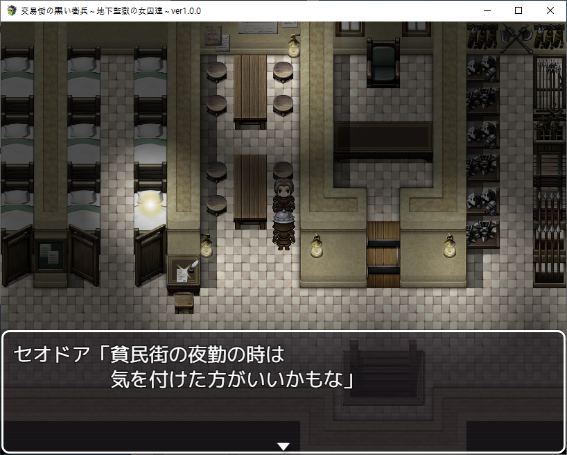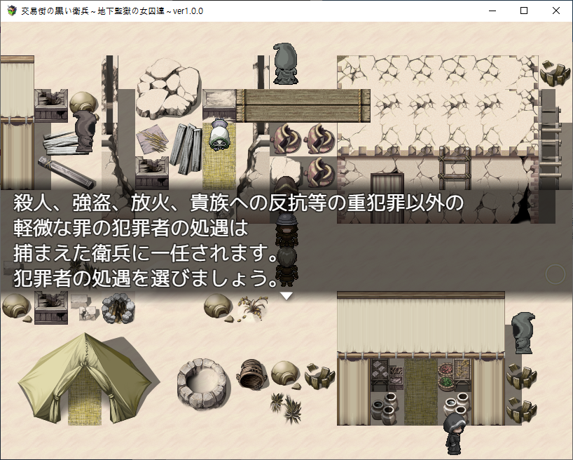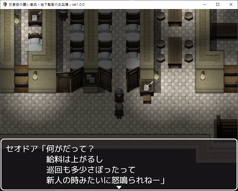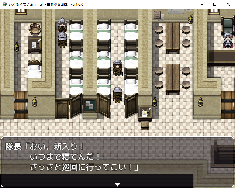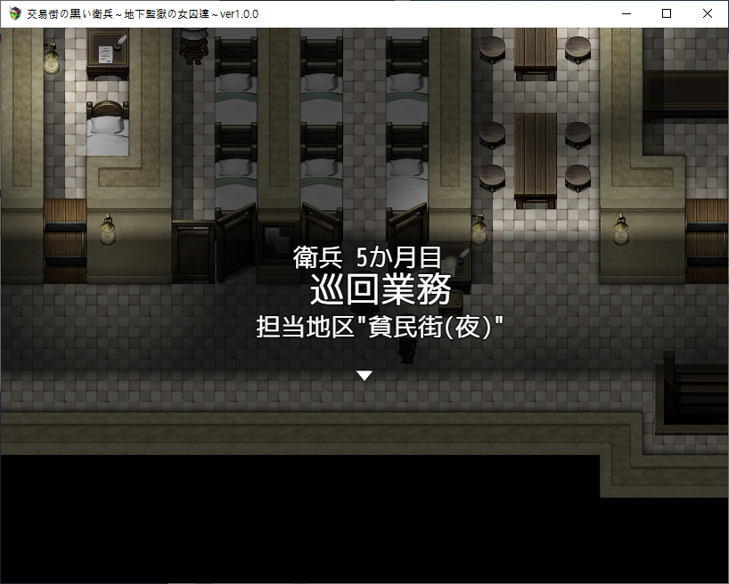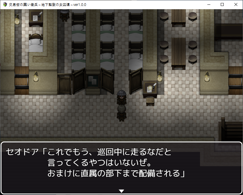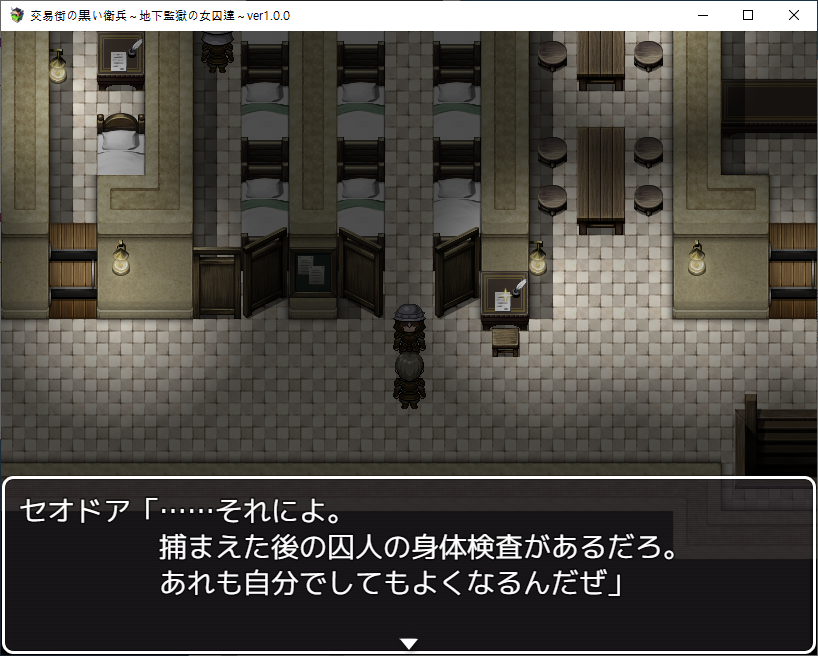 그냥 노말로 게임합시다주인공은 신참근위병신병이 빠져가지고 일안하냐?세이브는 보고서로 할 수 있습니다이름은 퍼거슼ㅋㅋㅋㅋ 어떻게 사람이름이 퍼거슼ㅋㅋㅋ출세가 다른게임의 경험치라고 보면 됩니다이런저런 설정을 만지고일하러 갑시다일은 제대로 하는 부패한 공무원아래로 가면 됩니다반짝이는 곳으로 순찰을 돌면 됩니다개시이동뭐래저렇게 생긴 사람은 조사할 수 있습니다범죄의 증가를 찾으면 붙잡을 수 있습니다 증거찾기는 랜덤입니다아무거나 선택해도 될듯응 걸렸어경범죄의 경우 판결은 범인을 붙잡은 위병에게 일임감옥에 처넣어서 출세를 빨리 하는게 게임진행에 좋습니다특히 여자의 경우 즐길 수 있습니다각 구역마다 특색이 있습니다현행범도 있습니다도망치는걸 붙잡으면 되고 보통 이곳저곳 왔다갔다 거려서 판단하기 쉽습니다현행범이라서 증거확인은 안합니다잘가고가끔은이렇게 무기를 들고 덤빕니다전투진힙스태미너도 있어서 좀 귀찮습니다딴건몰라도 하드면진짜 죙일 팼는데 안죽습니다이쪽은 창이라 범위가 2취급인지 여기서 때려도 맞습니다너무 안죽어서 그냥 노말로 바꿨습니다클리어하면비번과 동시에 월급을 받습니다환락가에서 놀자고 하는데입장료를 지불하고놀 수 있지만그냥 돈을 차곡차곡 모아서 출세하는게 좋습니다튜토리얼 종료위병단부단장을 목표로 합시다일을 계속 합시다앞으로는 뭐 반복작업입니다경험치가 차면 출세야간근무도 뛰고급료도 오릅니다이제 감옥에서 신체검사도 할 수 있게 됩니다밤이되면내려가서신체검사를 즐깁시다취향껏감금은 10인까지고 다 차면 갈아치워야 합니다고문실도 있습니다죽 일을 합시다어두워서 구역이 잘 안보입니다뭐 이벤트가 있는거 같은데 시간없어서 넘어갔더니 다신 못보더군요죽죽 출세하면 짬이 차서 달리면서 순찰한다고 뭐라 할 녀석도 없습니다고문실도 이용가능약물을 쓸 수도 있습니다무허가도 잡아주면서 돈을 벌어봅시다소문같은걸 들을 수 있는데지금보면 뭔가 이벤트의 힌트였을지도부하들이 열심히 일을 해주고 있습니다 공적은 제가 먹죠고문실은 돈을 주거나 나중에 강해지면 공짜로 쓸 수 있습니다이제 단장이 되었습니다업무도 이젠 맘대로 합니다부하에게 짬처리도 가능돈은 또 꼬박꼬박들어옵니다독방도 사용가능해졌습니다이런저런 즐길거리 추가이제 부단장이 되어봅시다경험치를 다 모아도 출세를 못하는데뒷돈을 찔러넣어줍시다내일부터 부단장입니다감옥열쇠의 예비를 관리할 수 있는 권한도 얻습니다지명수배도 작성할 수 있고 부하들이 취향에 맞는 여자를 잡아옵니다클리어이후는 직접 만들면서 노는 게임입니다
